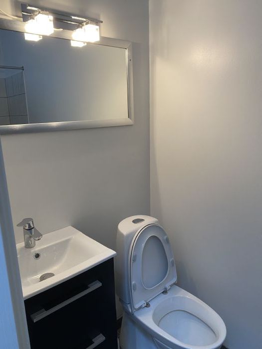 in the terrasse one can enjoy the morning sun. fully furntioned kitchen with a dish washer. the bath/toilette lies just behind the kitchen. the ceiling is with a new windows which enlight the appartment very well. the washing machine lies just beside the appartment.