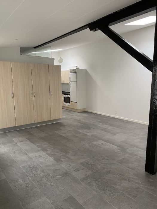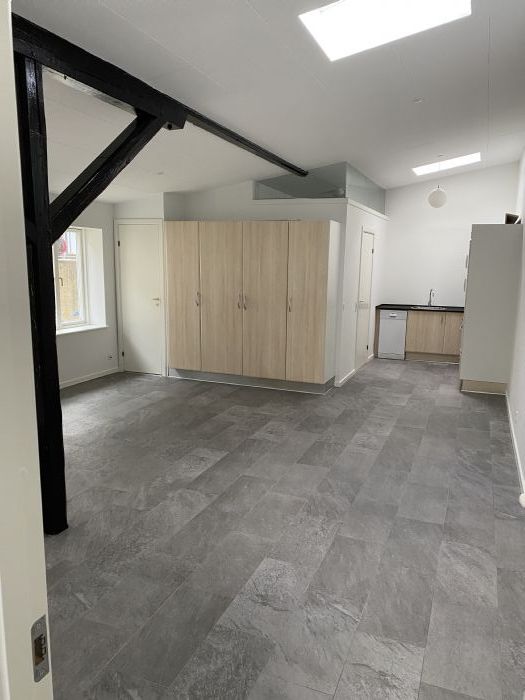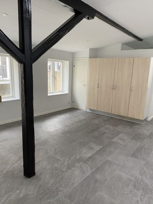 Den er helt ny-renoveret med nyt tag, ny vinduer. har gulvvarm over hele areal og det er fjernevarm forsyning (ingen gas udgifter), vel isoleret derfor forventes ikke de stor udgifter sidste ved årsopgørelse, lejligheden består af stue/køkken-alrum i et med en chamerende sort malet træ stand, et rummlig soveværelset, et badeværelse. entre er indraget med stuen.