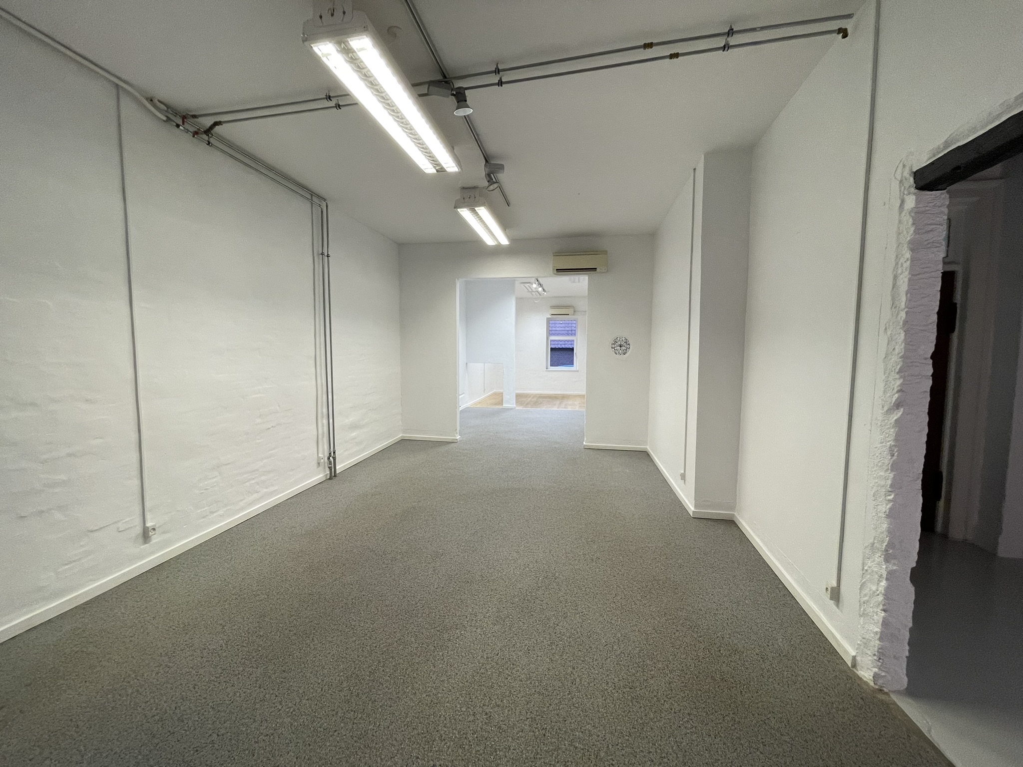 Lejemålet er et flot lokale, med en imponerende loftshøjde, som skaber en lys og rummelig følelse. Lejemålet kan udlejes til alle former for detail eller liberalt erhverv, dvs. både som butik, klinik, frisør, showroom eller kontor.
