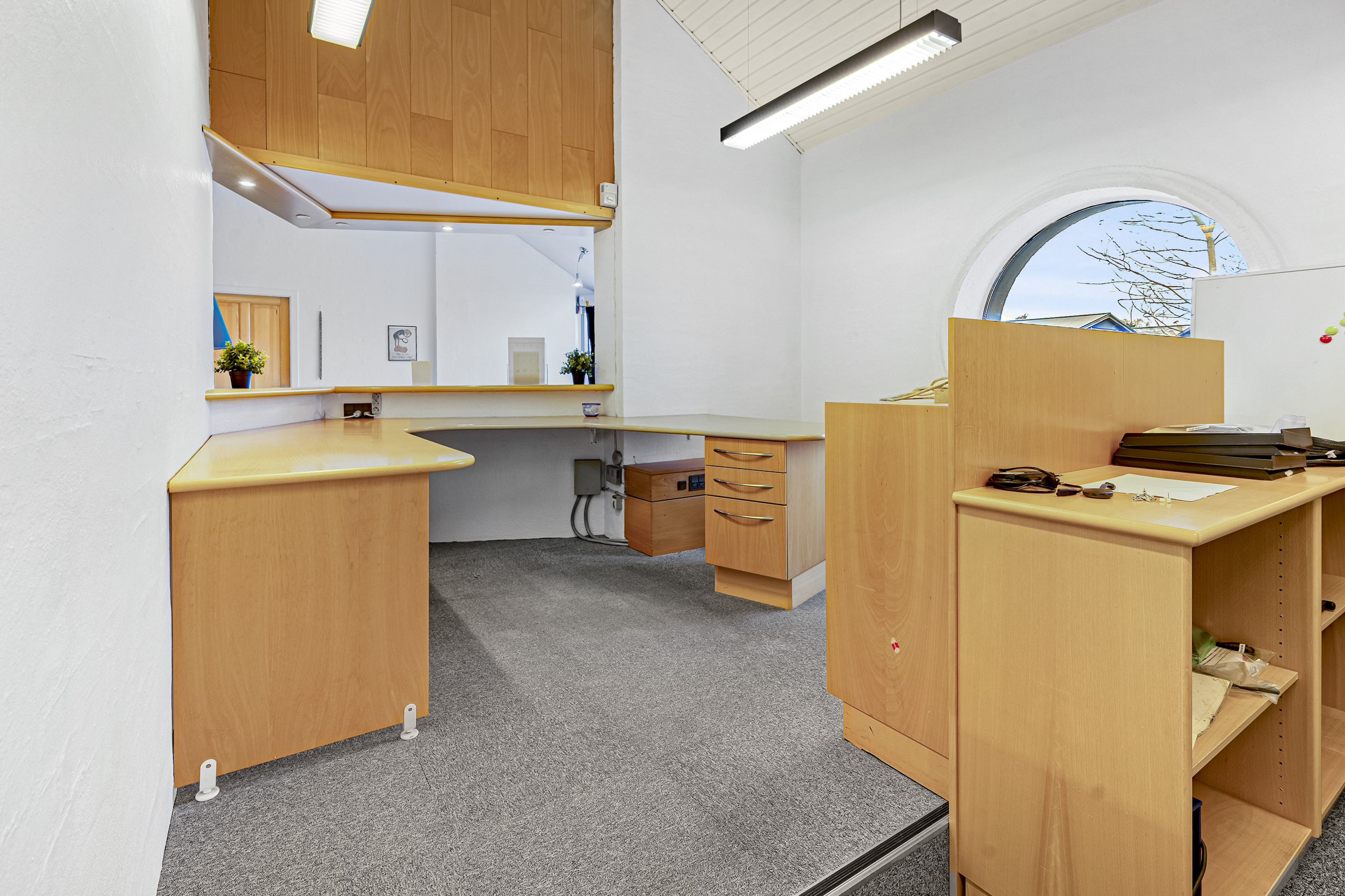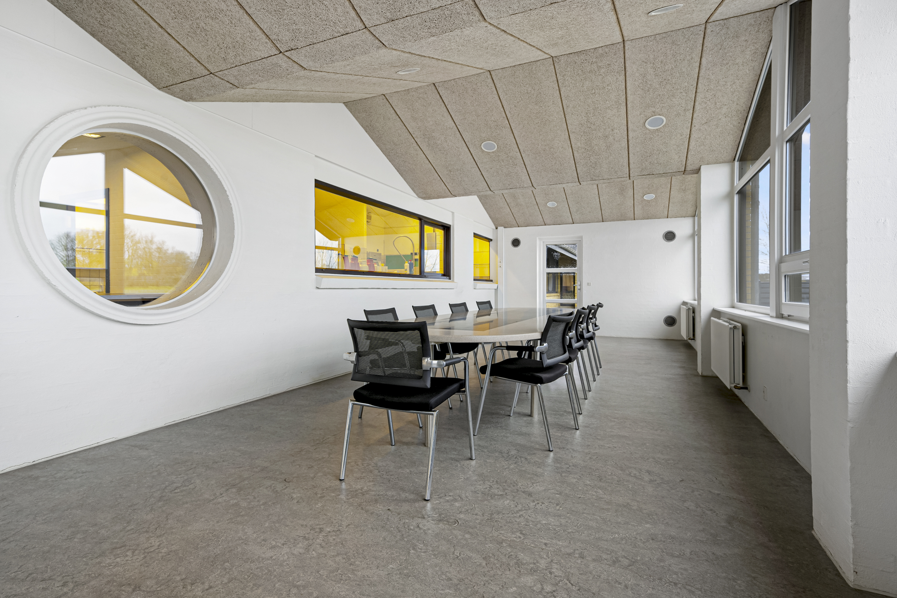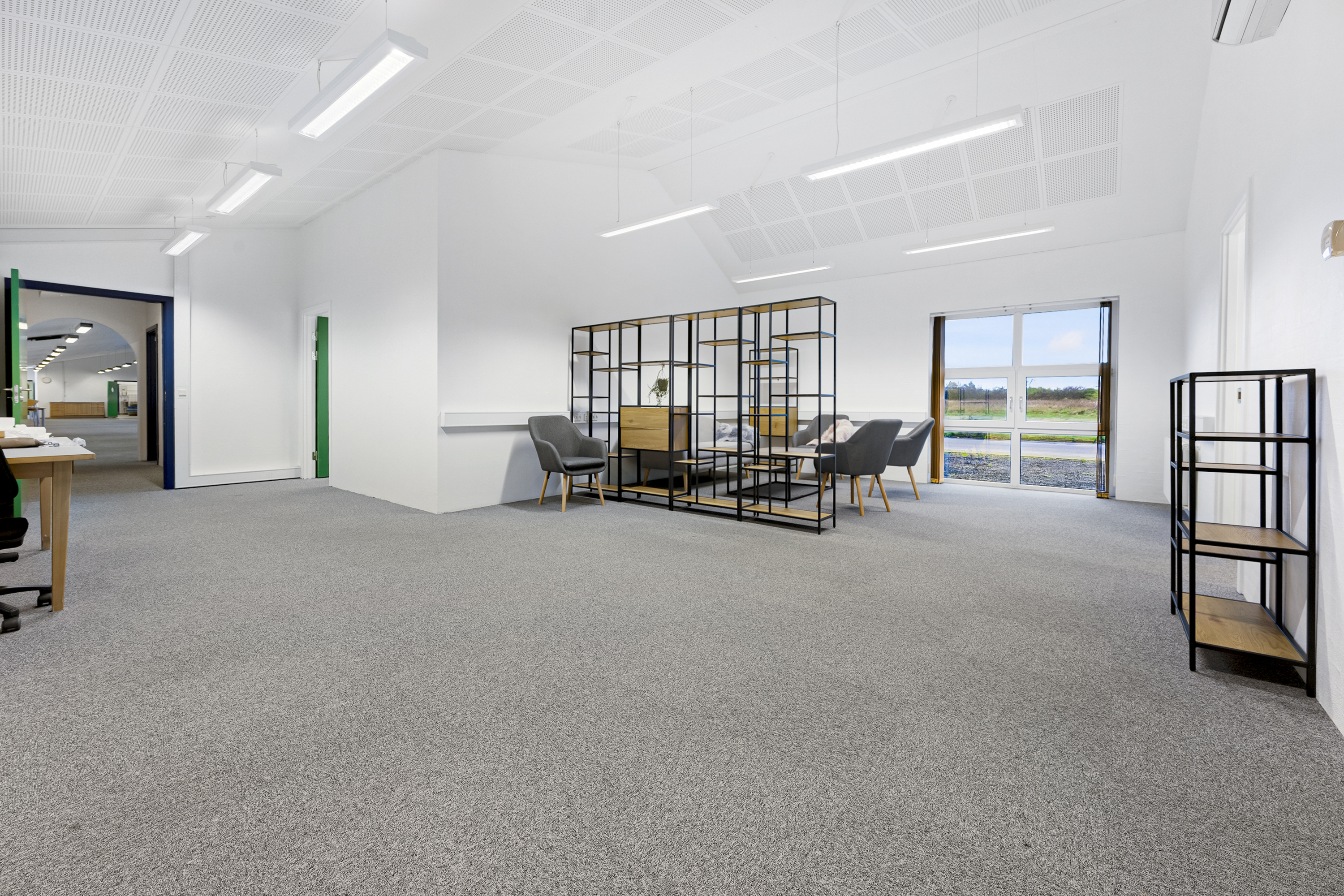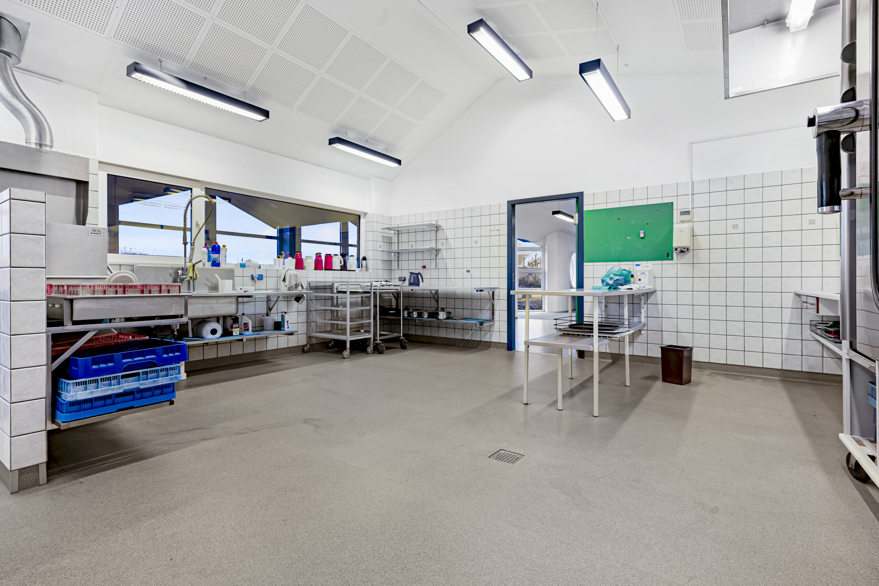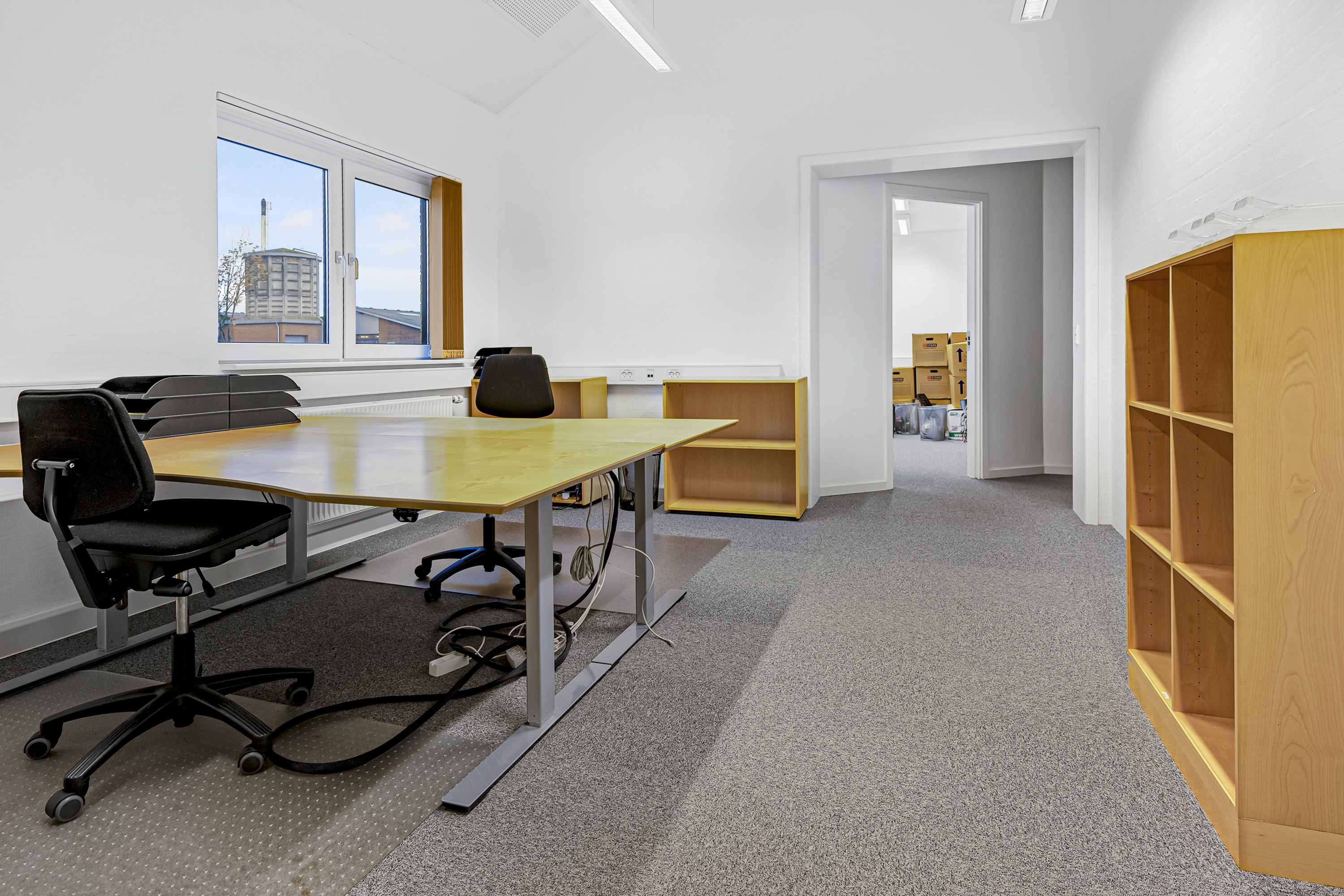 Kontor- og administrationsbygningen består af et samlet erhvervsareal på ca. 1.000 m2, fordelt på kontorer, industrikøkken, kantine-/selskabslokaler, teknikrum, møderum og toiletfaciliteter m.m.