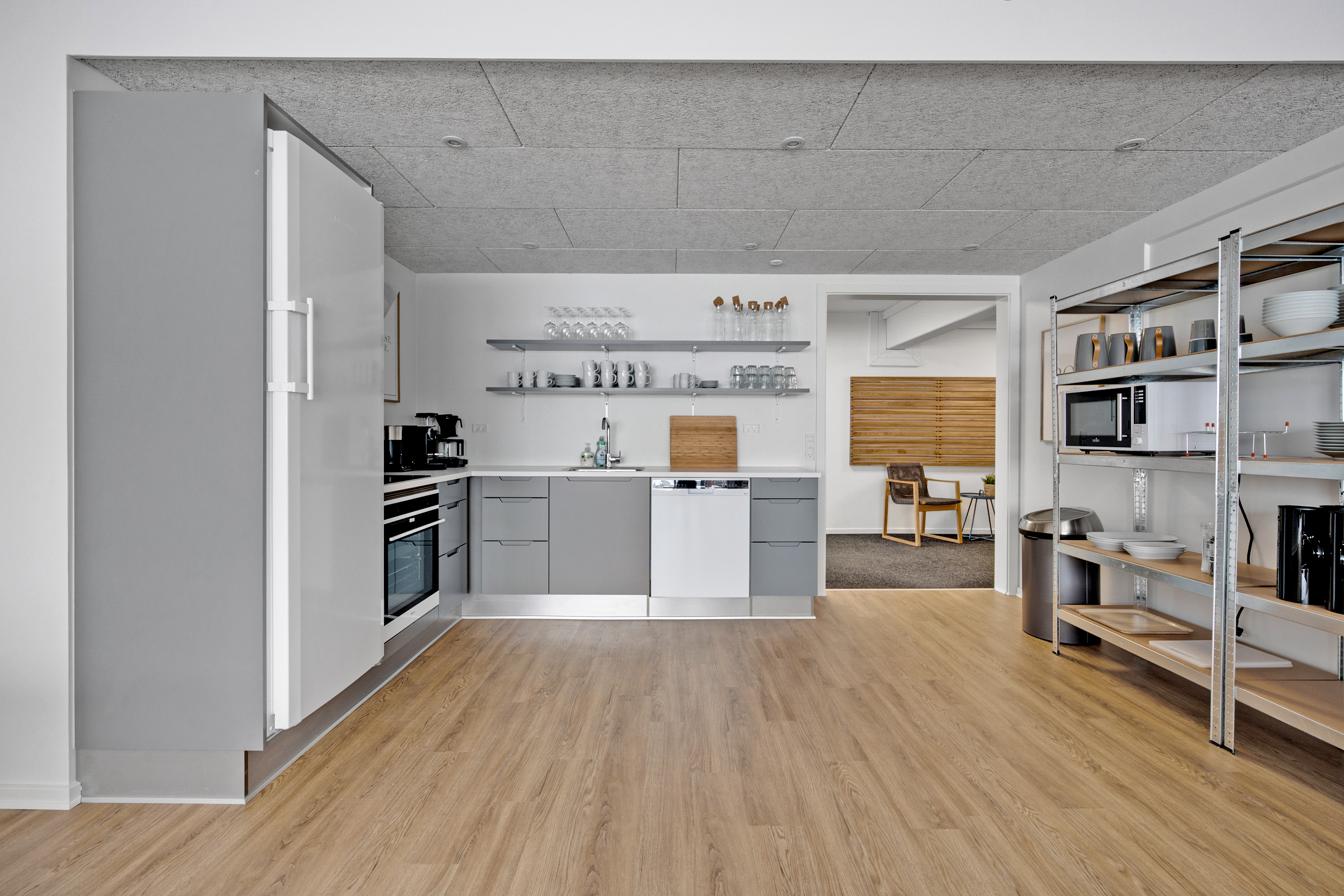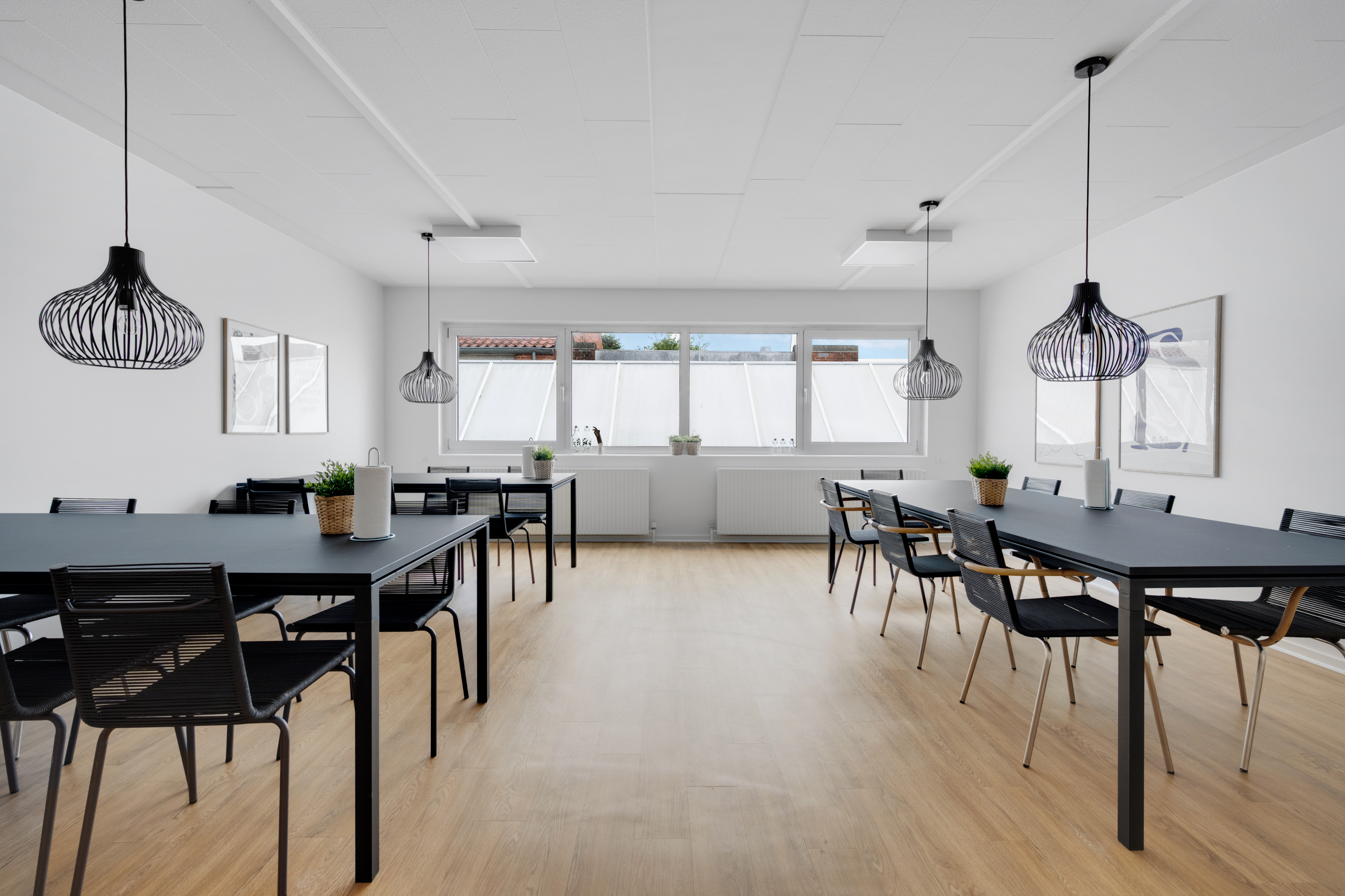 Indenfor finder du lyse fællesområder, et lækkert fælleskøkken med god spiseplads, toiletfaciliteter og et mødelokale, som du frit kan benytte.