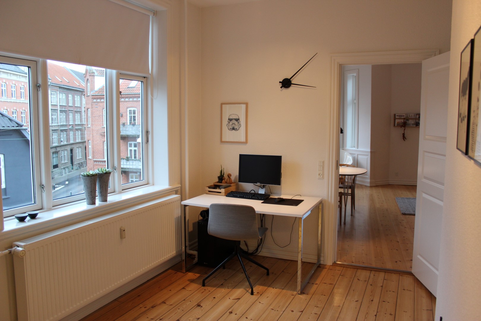 Kun få skridt fra gågaden og byens liv og havnefronten 🌊 Musikkens Hus, Nordkraft og meget mere venter lige rundt om hjørnet!