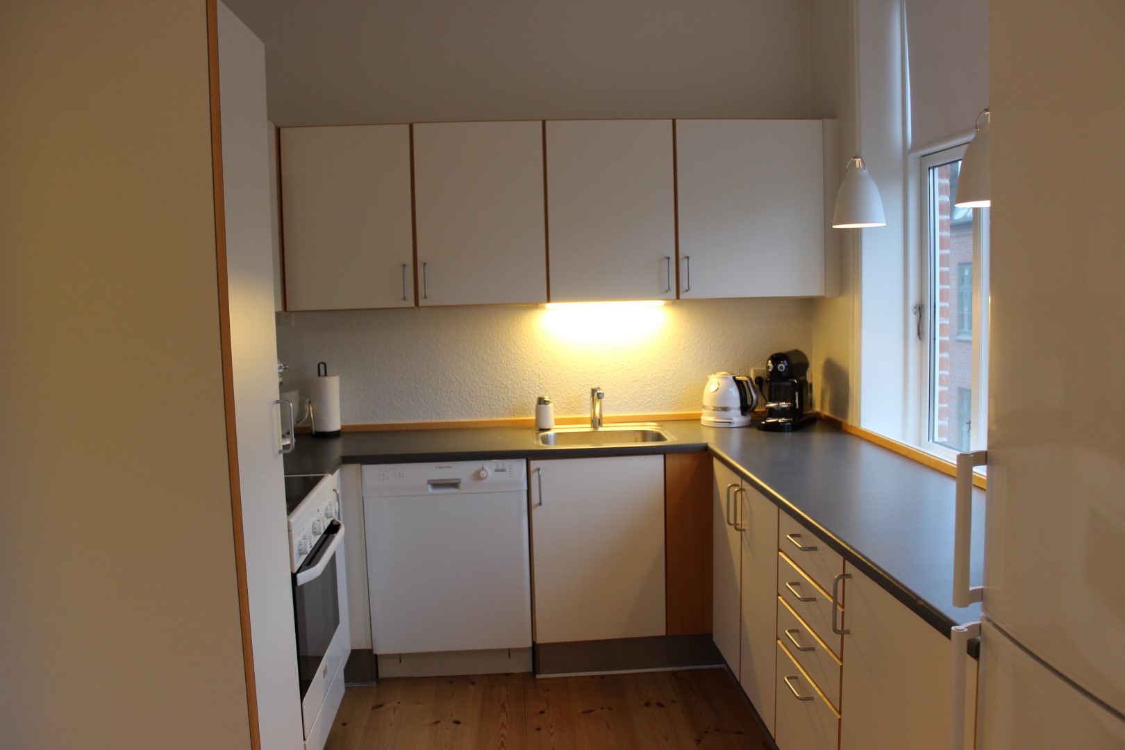 🍳 Køkken med spiseplads og alle hårde hvidevarer (Komfur,, kølefryseskab og opvaskemaskine)