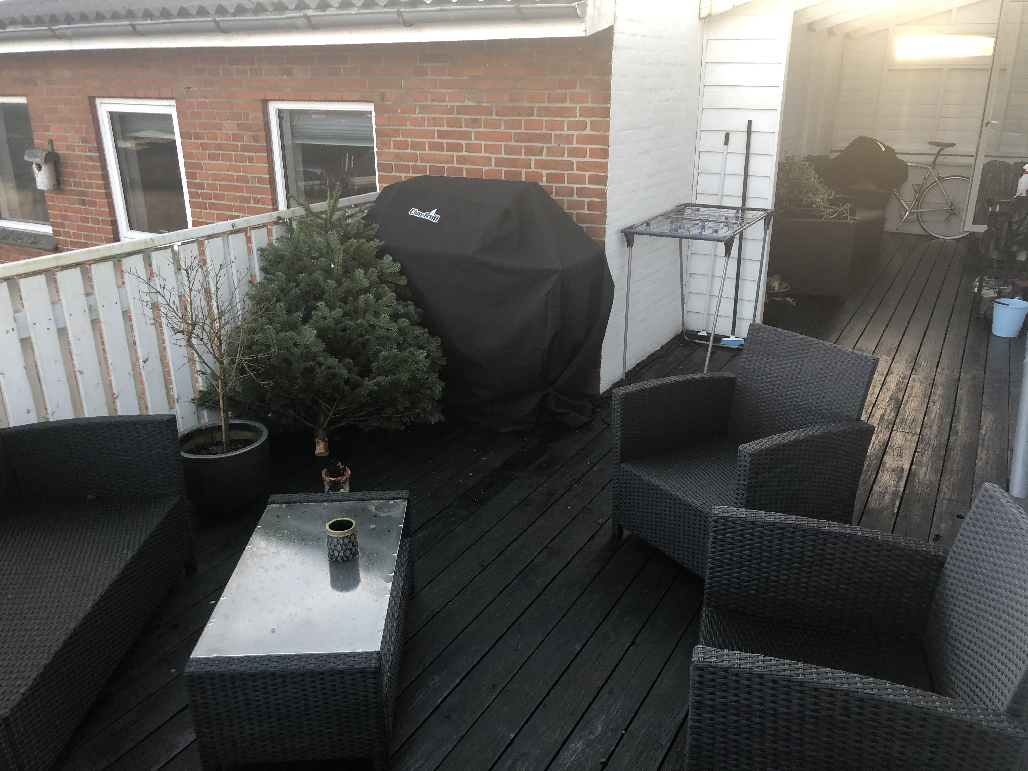 Den store sydvendteterrasse har god plads til grill samt både cafébord og loungemøbler, og en fineudsigt ud over området.