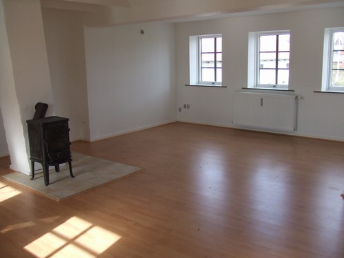 Stor og lys 1. sals lejlighed med åben køkken/stue, 3 værelser, stor entre, lækkert badeværelse. Ligger i en gammel ombygget gård med 6 lejligheder i alt. Opvarmes med naturgas( målere på radiatorer).
