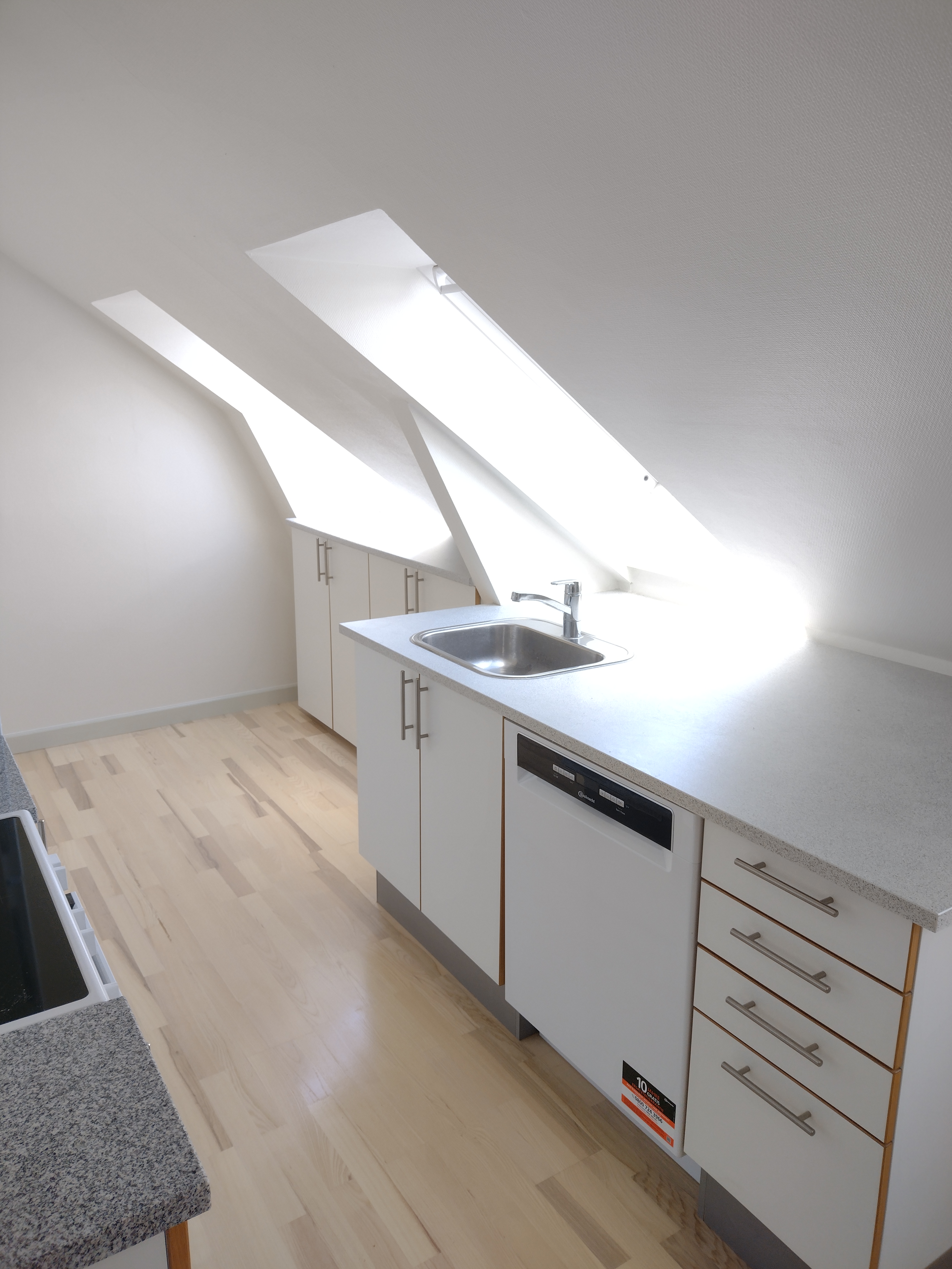 Nyt stort spisekøkken med ny opvaskemaskine og nyt komfur.