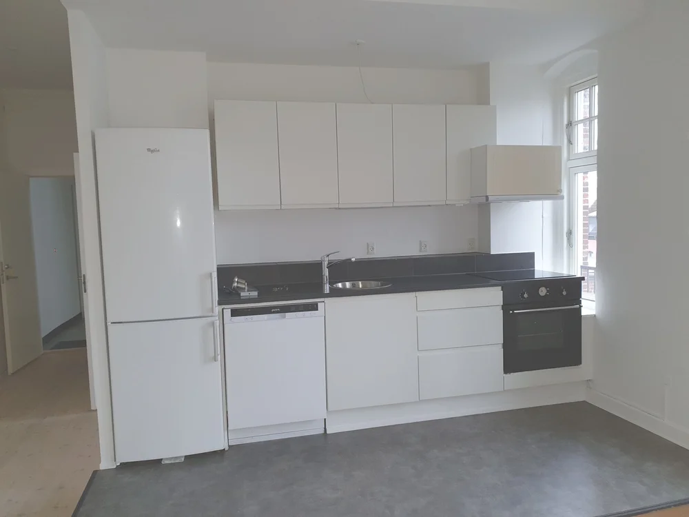 Dejlig lys lejlighed med sydvendt altan og nyere lækkert spisekøkken med god plads og køl/frys, ovn og kogeplader samt opvaskemaskine.