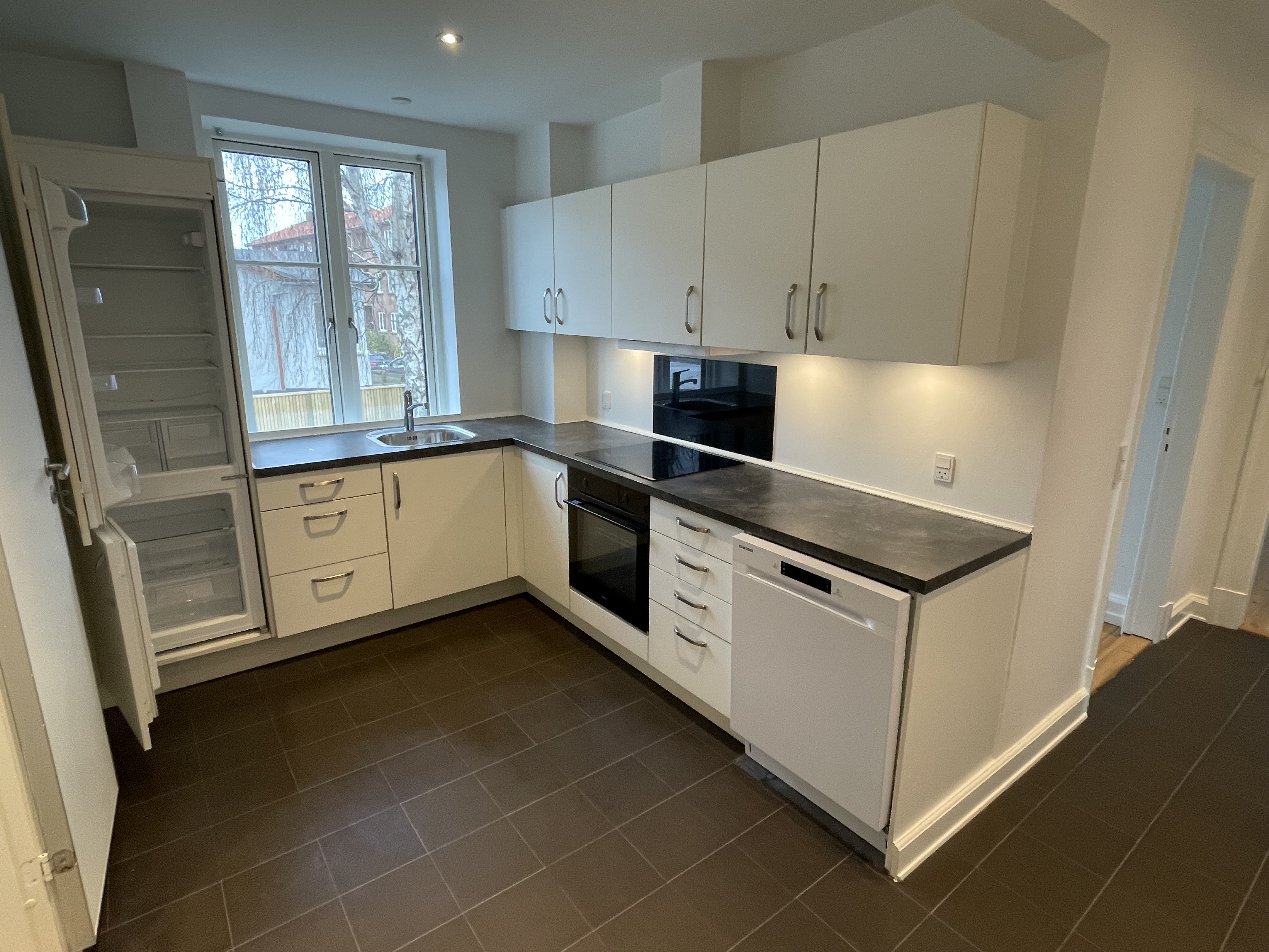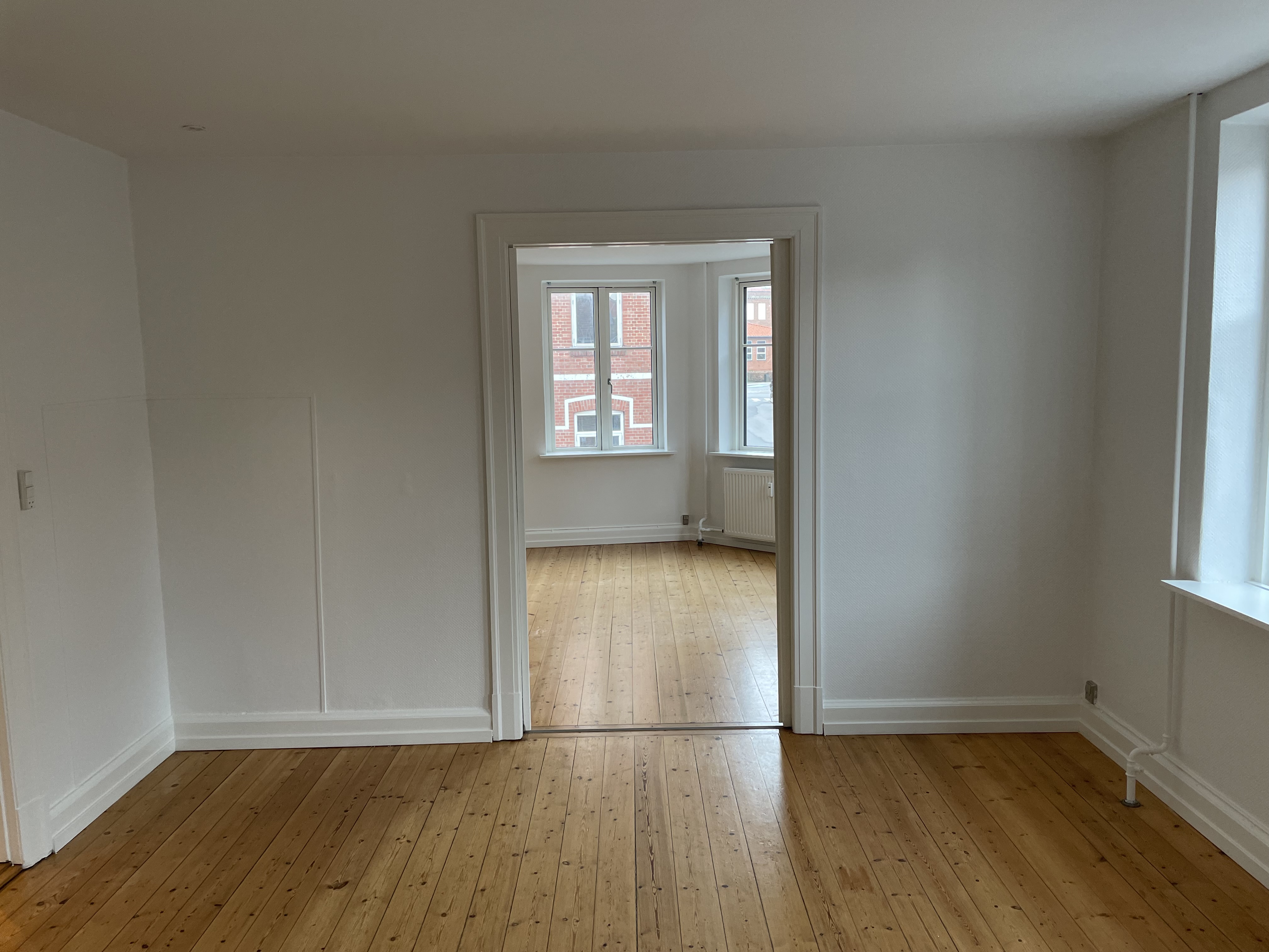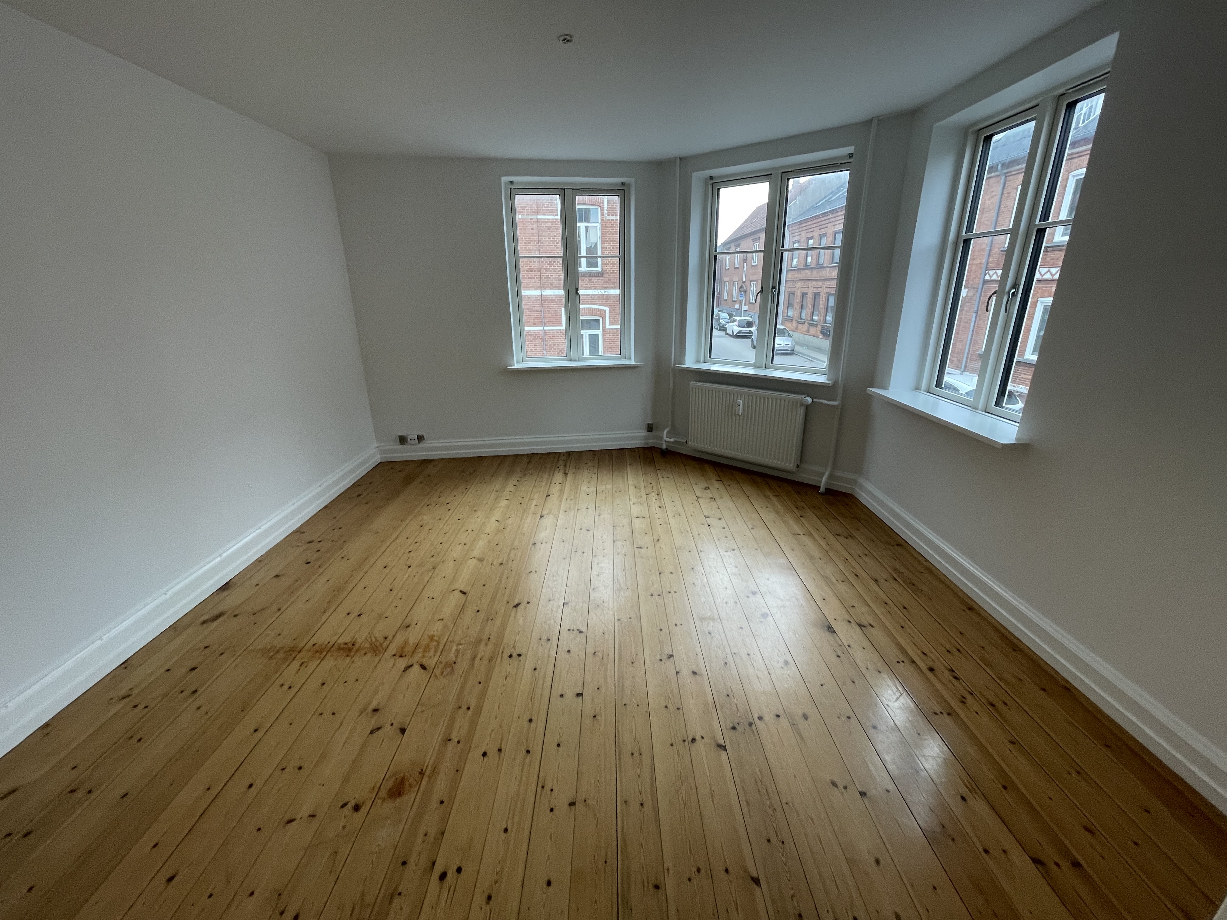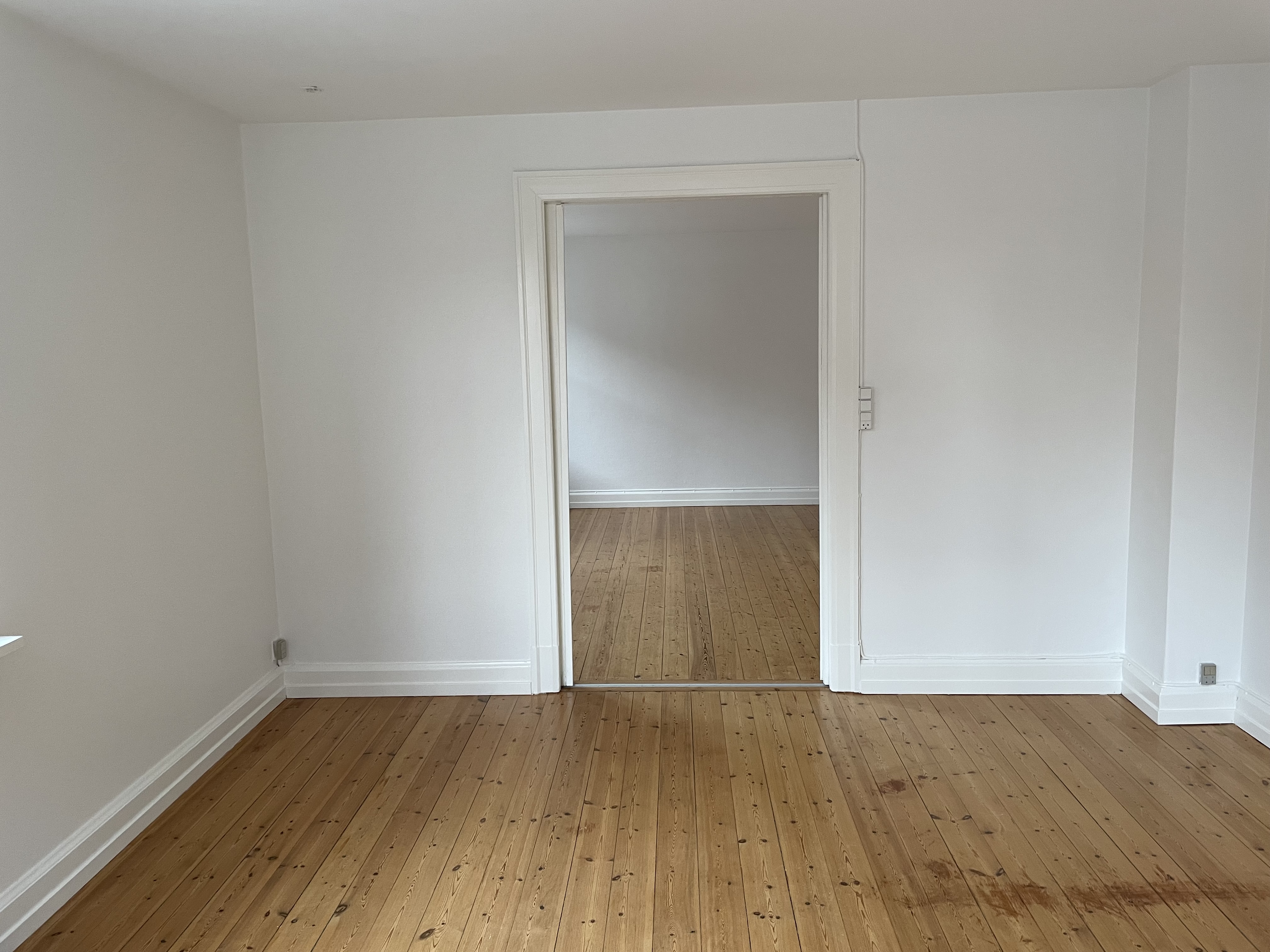 I en velholdt rødstensejendom på Suhrsvej i Korsør, nær stranden, er den høje stue-lejlighed på 114 kvm. og 4 værelser ledig fra tidligst 1.5.2026. Den indeholder 2 stuer en-suite, soveværelse, børneværelse/kontor, køkken og badeværelse med gulvvarme. Opvarmning via fjernvarme. Depotrum/skurplads medfølger. Vaskemaskine/tumbler tilhørende alene dette lejemål forefindes i kælder. Plankegulve. Overtages nymalet. Nyere vinduer. Dele-have mellem 3 lejligheder. Ligger i Halsskov bydelen. Tæt på strand og Korsør centrum. Skriv for fremvisning.