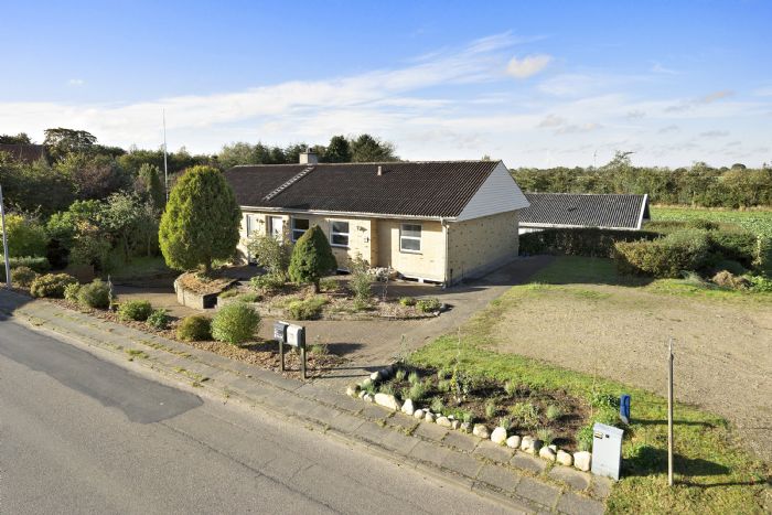 Beskrivelse:Gulstensvilla beliggende centralt i Skelhøje midtby tæt på købmand, torv og transport. Skelhøje er et lille lokalsamfund med et aktivt foreningsliv. Byen ligger på kanten af Dollerup Bakker i noget af Danmarks skønneste natur. 500 meter fra villaen starter den Sorte Sti, som fører direkte ned til Hald Sø, som er en af Danmarks dybeste søer.