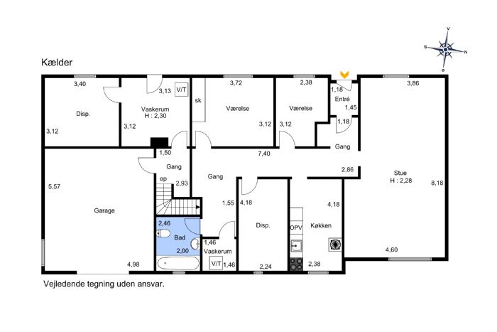 Der er garage på 28 m2 i underetage som kan lejes separat for kr. 400,- pr. md.