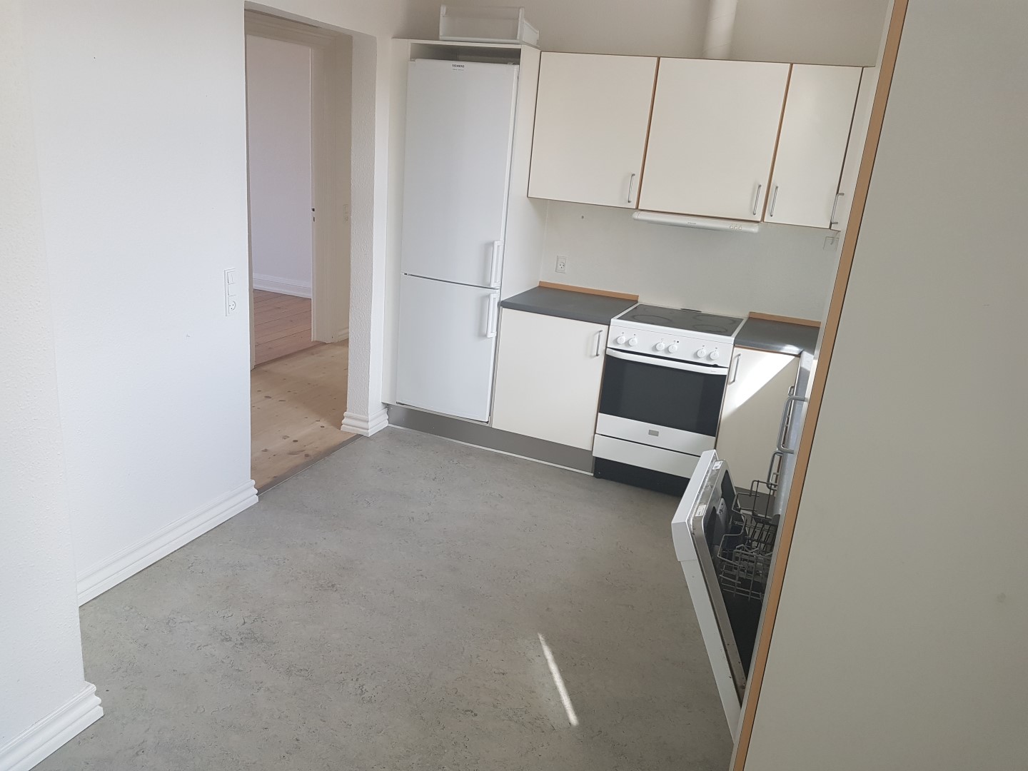 🍳 Køkken med spiseplads og alle hårde hvidevarer (Komfur,, kølefryseskab og opvaskemaskine)