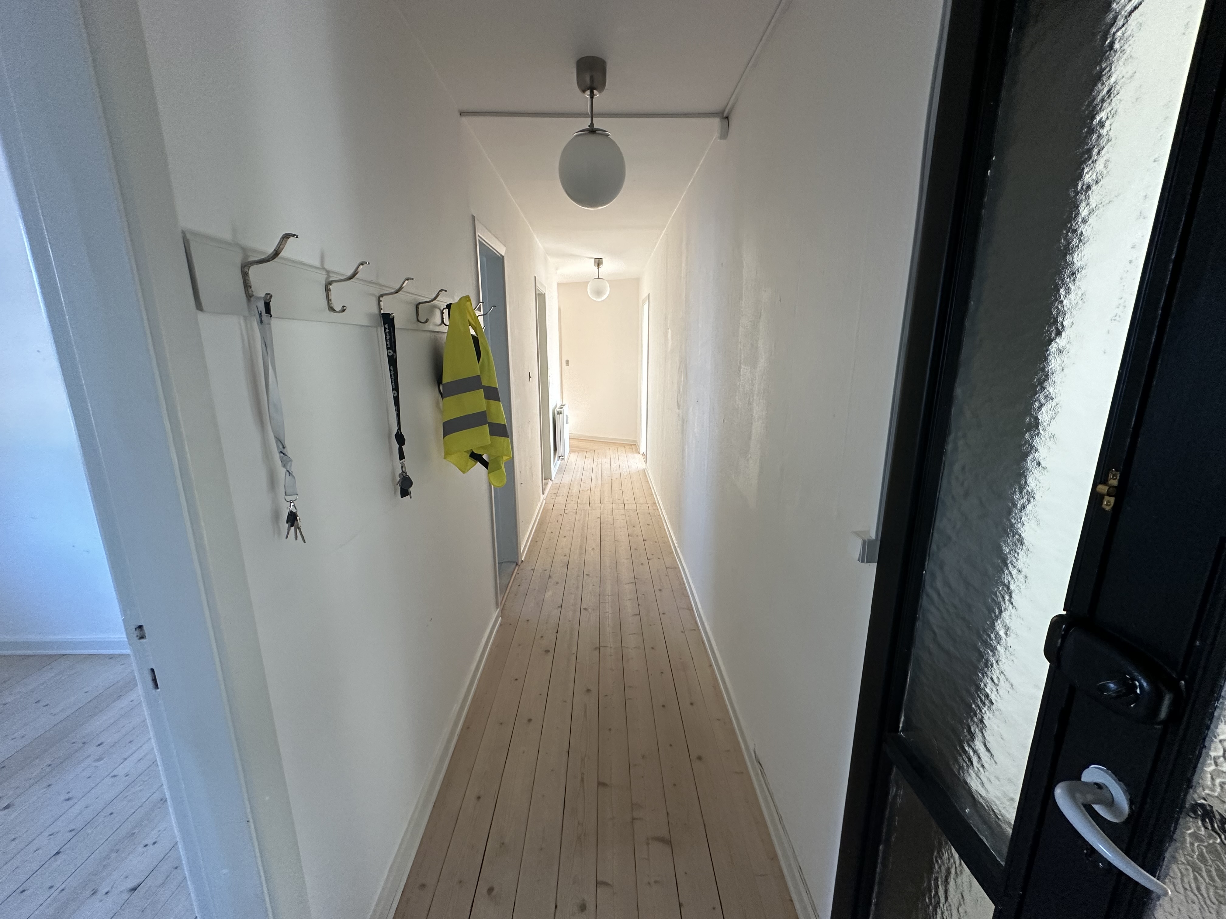 Lejlighedener på hele 148 m² og indeholder enstor vinkelstue med sydvestvendt altan,stort soveværelse, tre gode værelser,moderniseret køkken og badeværelse (renoveret for ca. 2 år siden) samt en lysentré og gang. Gulvene er flotte, afhøvlede plankegulve, og lejlighedenfremstår indflytningsklar og velholdt.