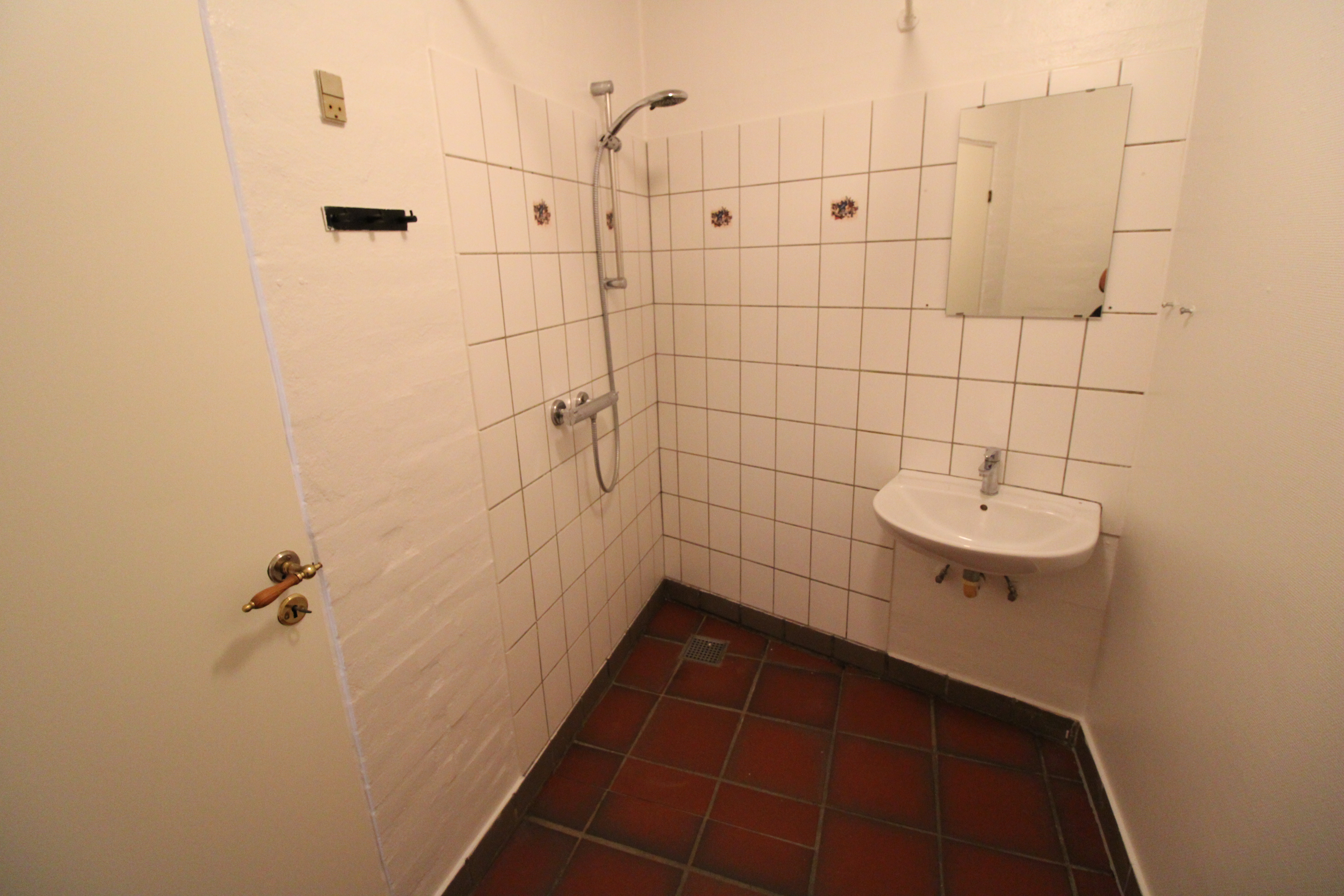 Lys et værelses lejlighed i stueplan. Indeholder pænt køkken med kogezone og køleskab m. frys. Et fint rummeligt badeværelse og en stor lys stue. Der følger et kælderrum med til lejemålet. Der er adgang til fælles cykelskur, vaskeri, stor terrasse og parkeingsplads til bil.