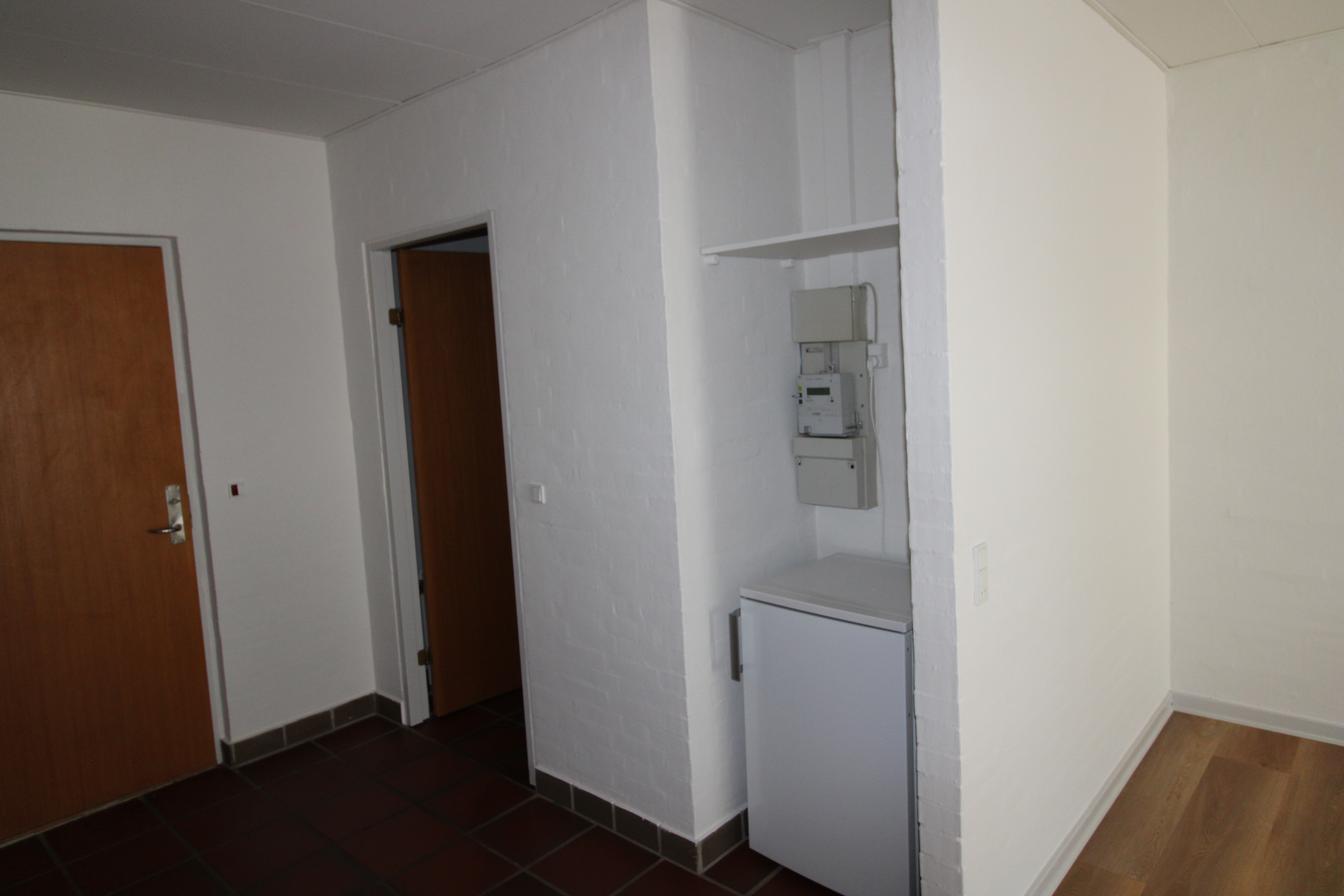 Lejemålet byder på et hyggeligt lille køkken udstyret med to kogezoner, en praktisk ovn i arbejdshøjde og køle-fryseskab. Du får en stor, lys og indbydende stue samt et rummeligt badeværelse. Desuden medfølger et tilhørende depotrum placeret lige overfor lejemålet.