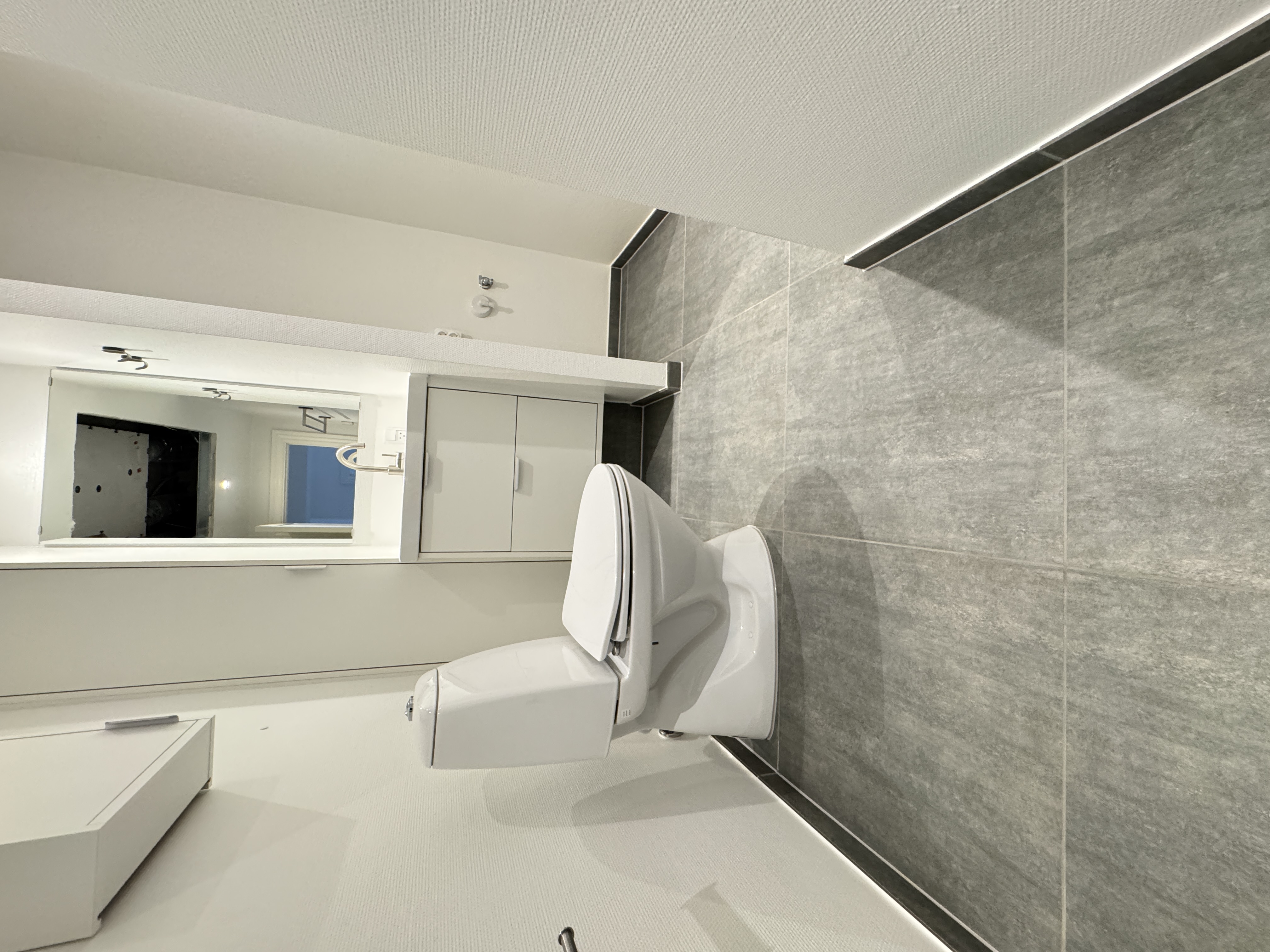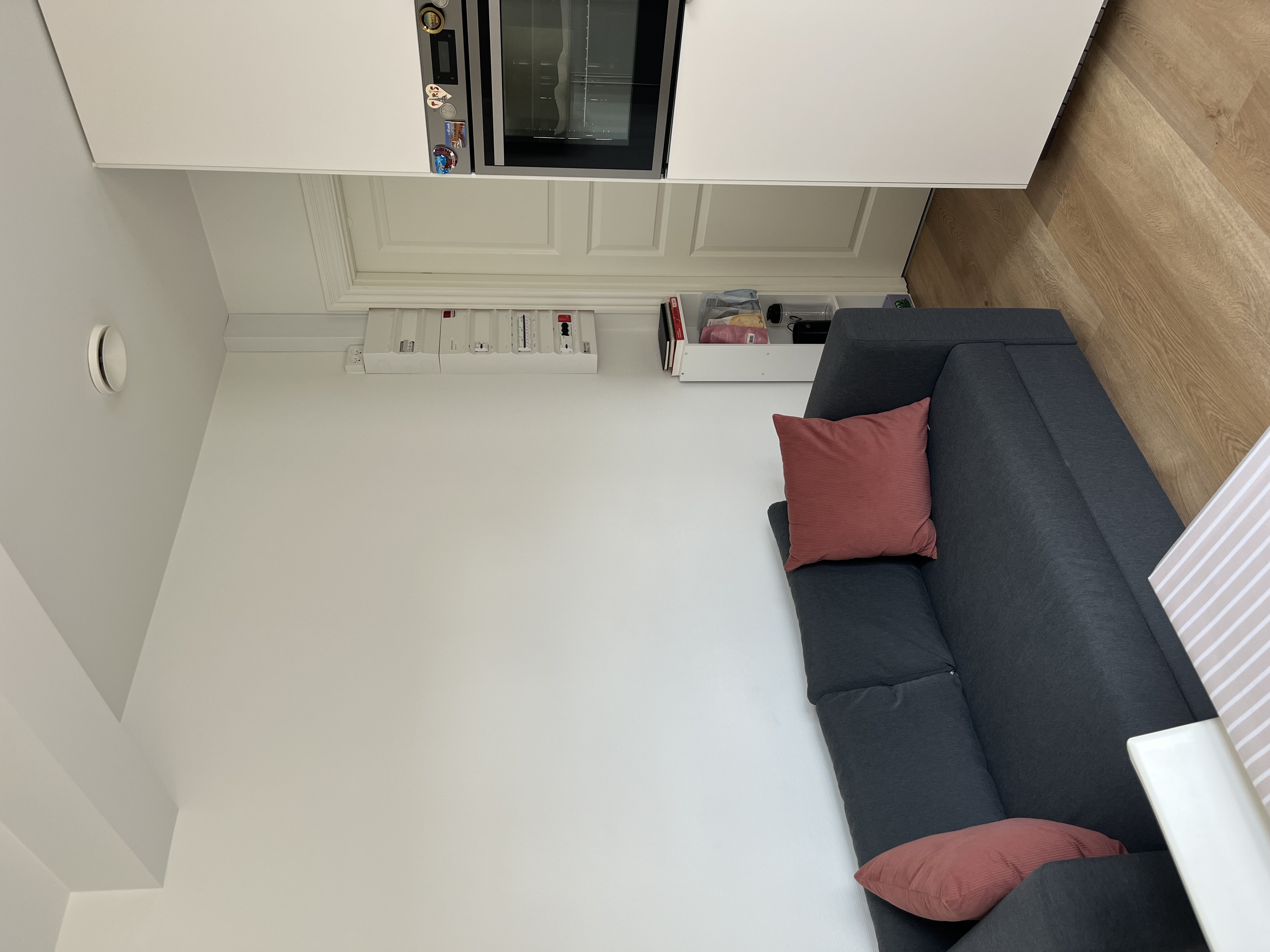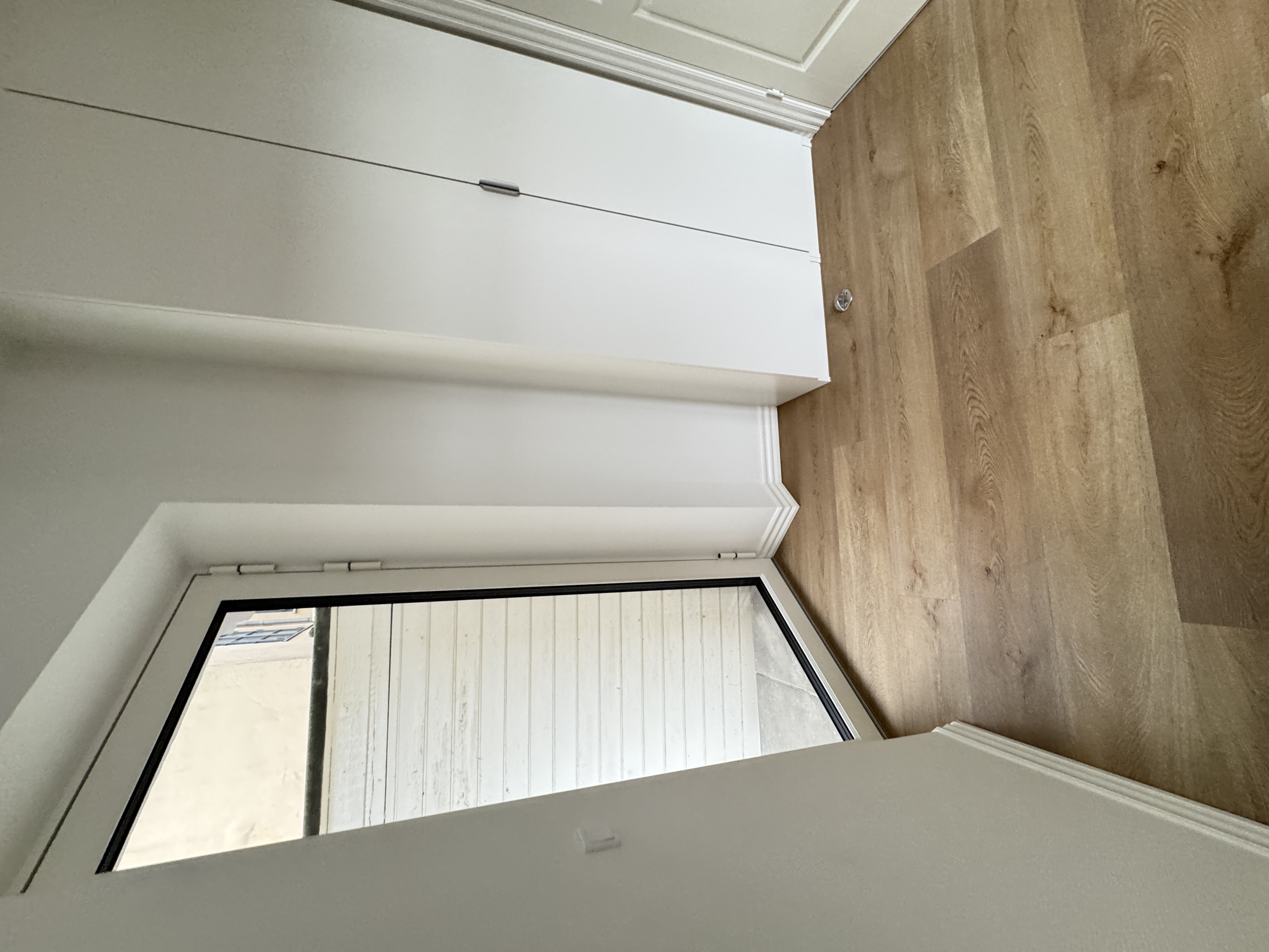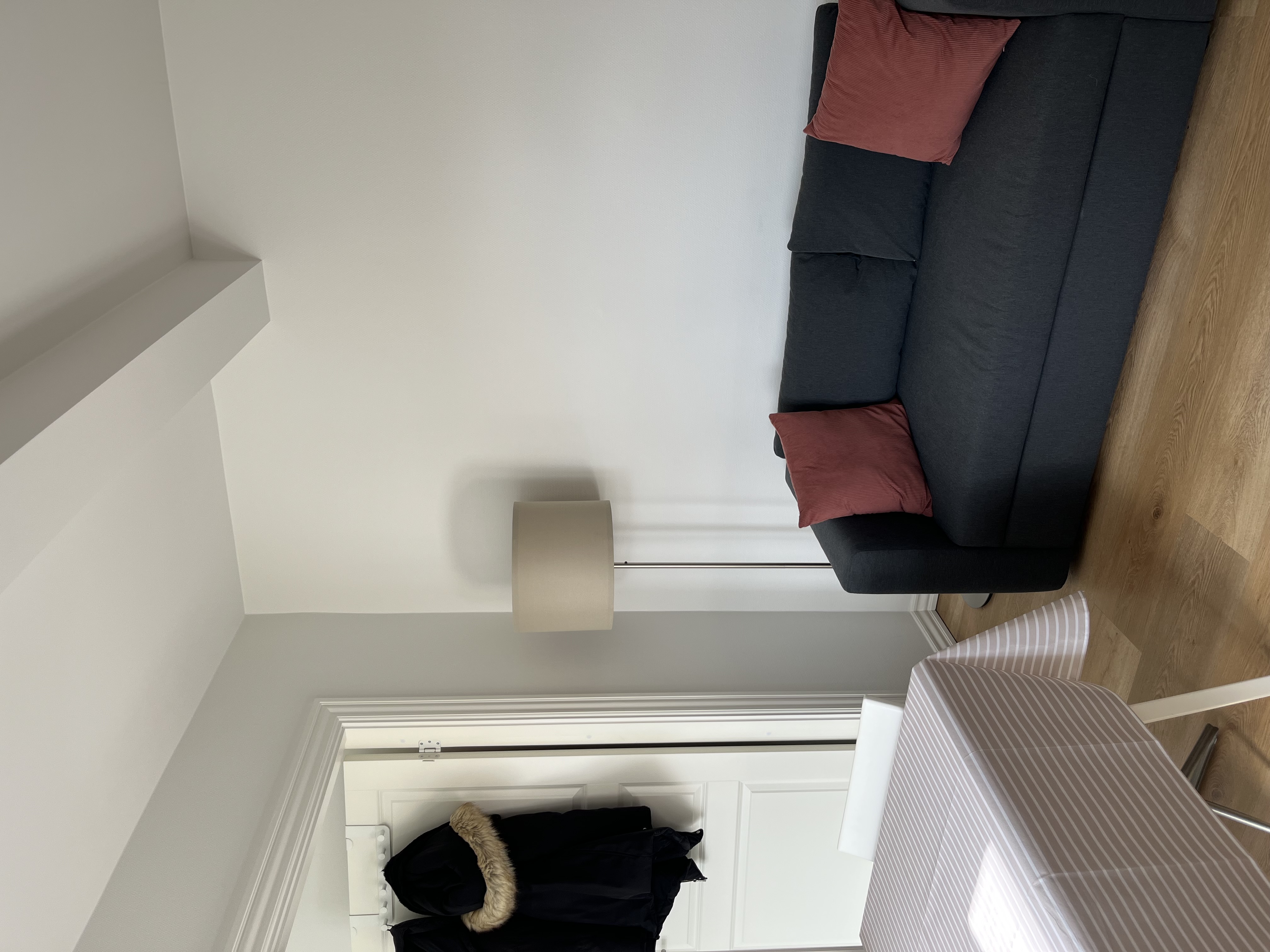 Der er klinkegulv i badeværelset, og slidstærkt højtrykslaminatgulv i resten af lejligheden.