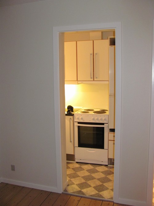 2 Værelser lejlighed, lejligheden ligger ca. 1m oppe over gaden, den er ombygget fra erhverv i 2004-2005, med brand sikring, nyt køkken, bad, vægge, lofter og døre. Inde udlejning bliver vægge, lofter, rør, radiator, træ samt gulve gennemgået så lejemålet fremstår som istandsat. Der er egen tilslutning til fjernvarmen.
