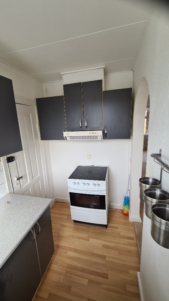Lejligheden har en god og funktionel indretningmed entré/gang, stue, soveværelse samt køkken med trægulve. Badeværelseter udført med lyse fliser på væggene, og hele lejligheden er nymaletved indflytning, så den fremstår lys og indbydende.