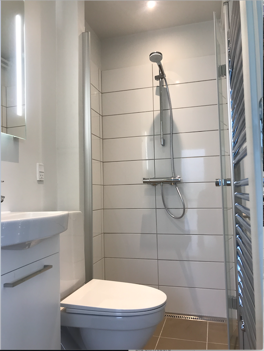- nyere badeværelse med brusekabine - gulvvarme - håndklædetørrer og el udluftning