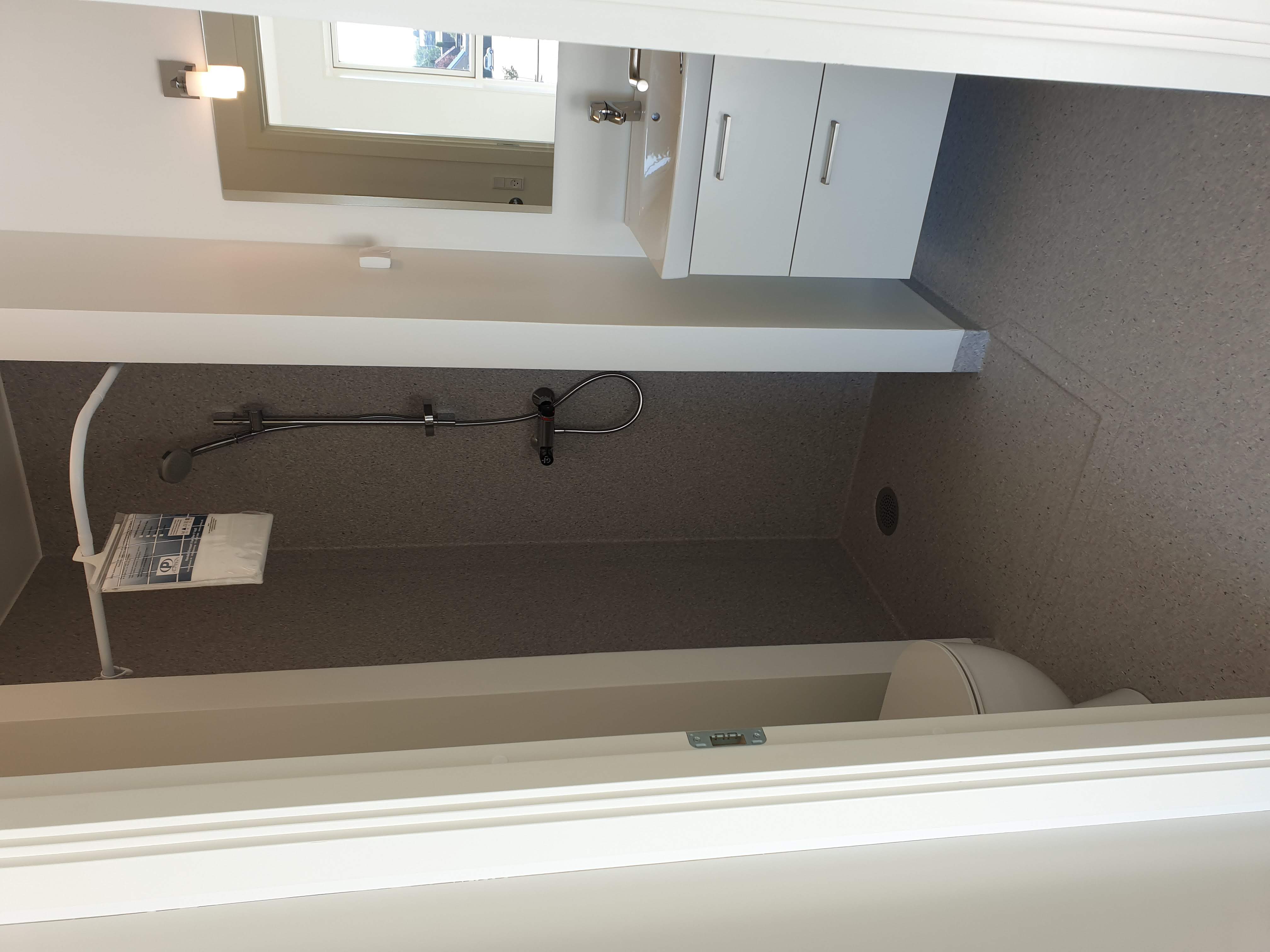 Køkken er fra HTH med alt i hårde hvidevarer. Badeværelset er med gulvvarme, bruseniche, vaskemaskine, tørretumbler og interiør er ligeledes fra HTH.