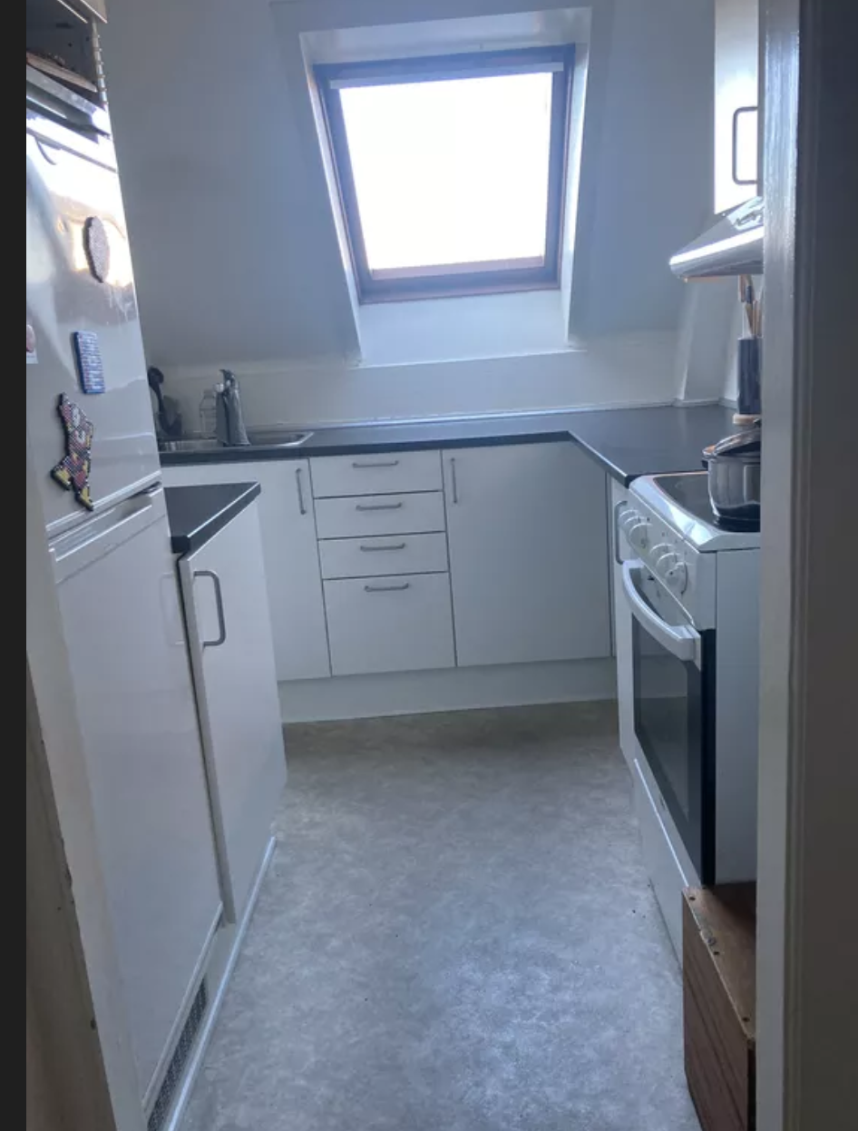 Der er 2 stuer og et soveværelse. Fint køkken og mindre badeværelse.