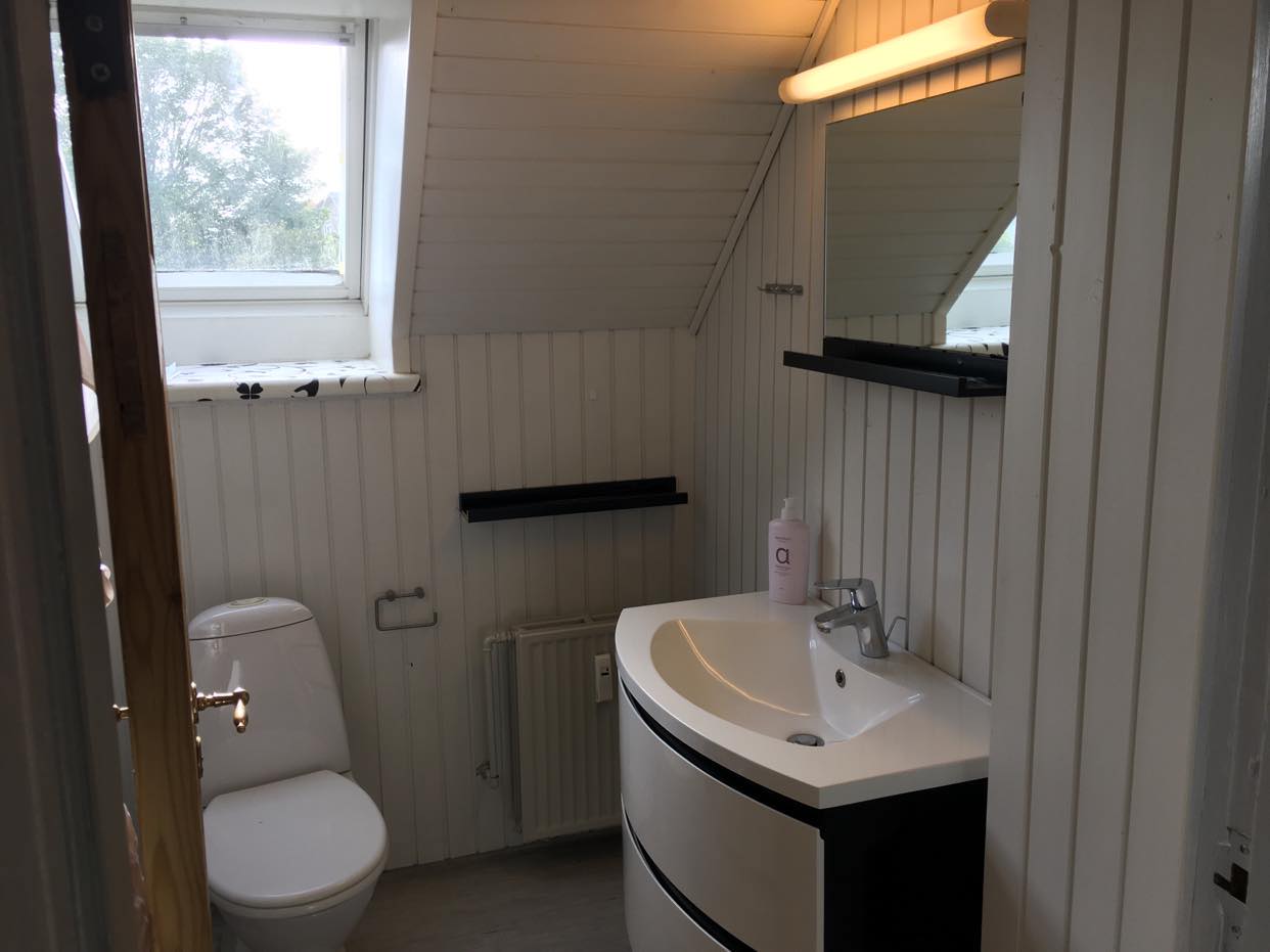 To sammenhængende sydøst vendte stuer med fri udsigt over byens tage og til marker. Begge med herligt lysindtag, og den ene er med trefagsvindue i karnappen under tårnspiret. Køkken og toilet med de nødvendige hårde hvidevarer. Nyt kvalitetskomfur lige indsat. Mindre soveværelse med indbygget skab. Lejligheden ligger øverst og har til dels skrå vægge, hvilket gør den hyggelig, let at fyre op og billig i varme.