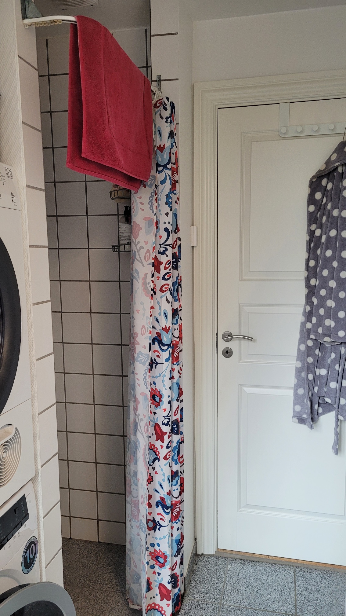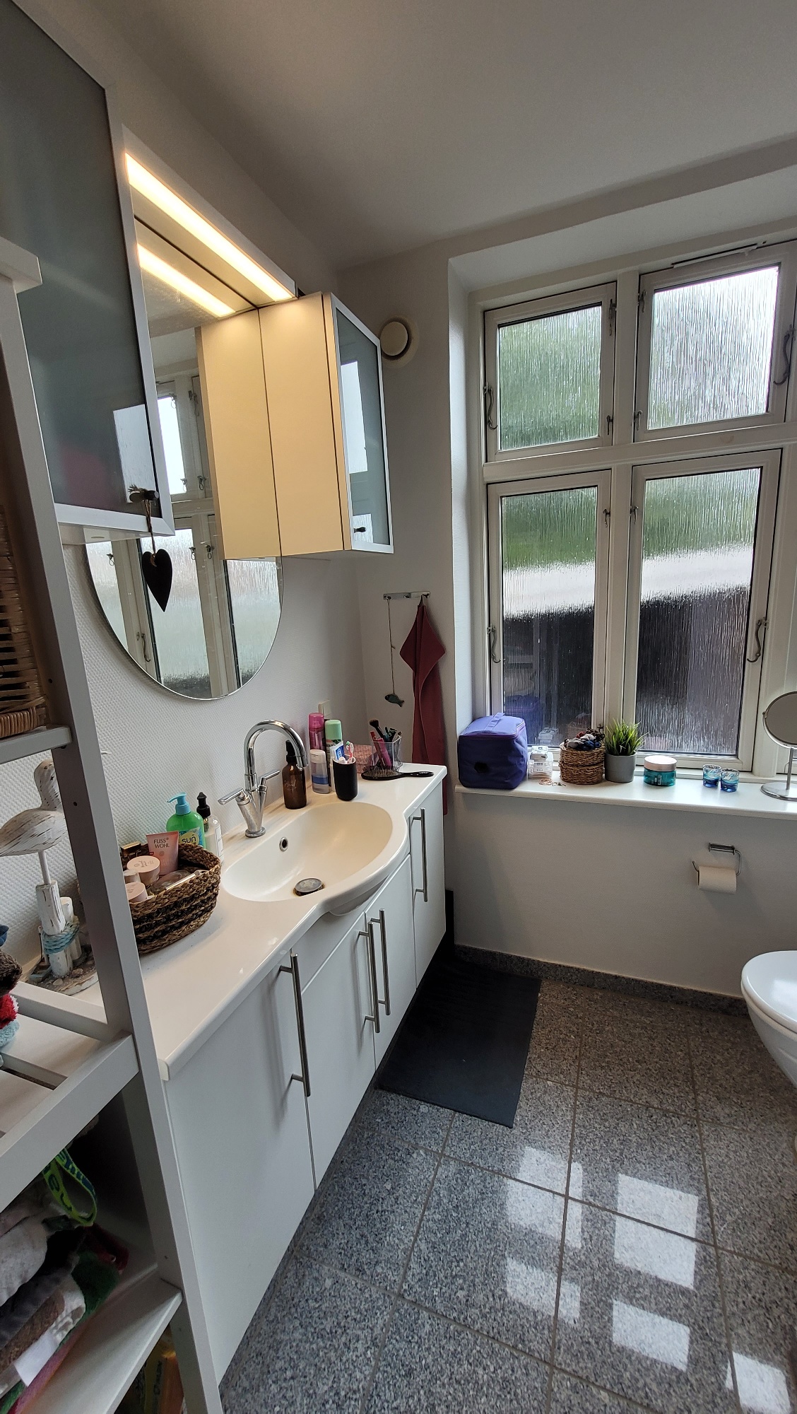 Lejligheden består af badeværelse med granitfliser, gulvvarme og plads til opstilling af egen vaskemaskine og tørretumbler.
