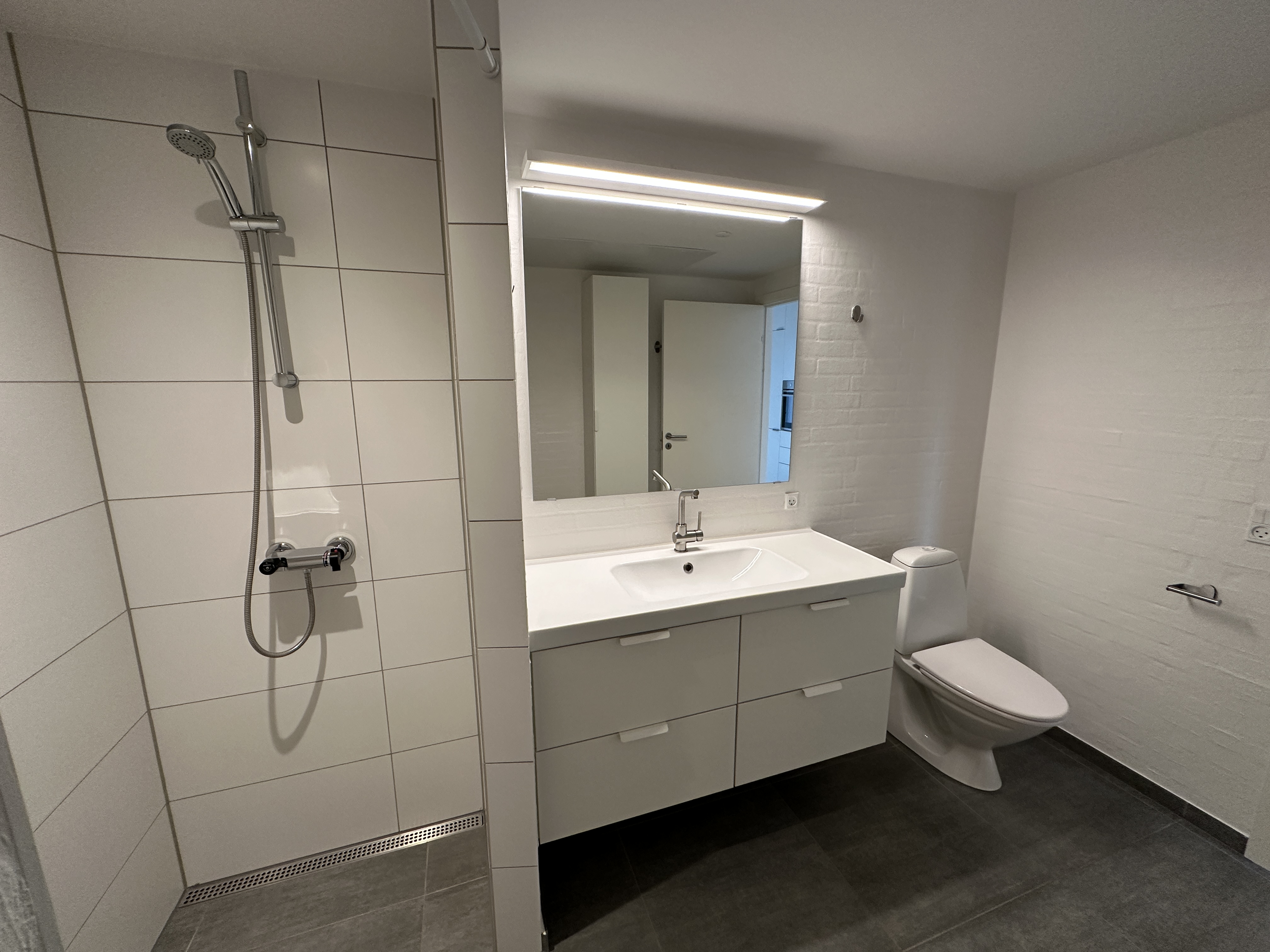 Værelset har indbyggede skabe, med god plads til opbevaring. Lejlighedens badeværelse har plads til opstilling af egen vaskemaskine og tørretumbler. Udlejer stiller ikke maskinerne til rådighed.