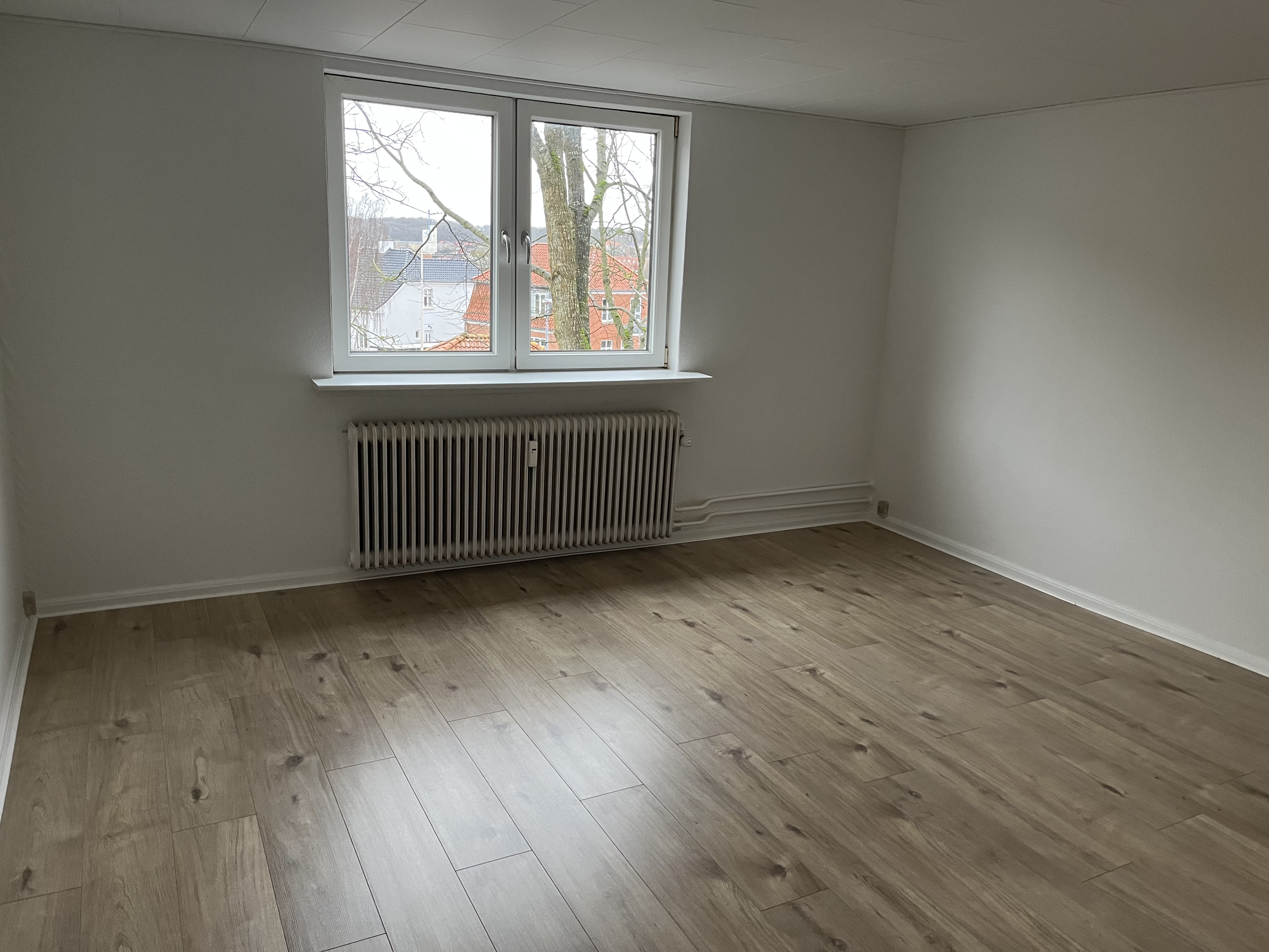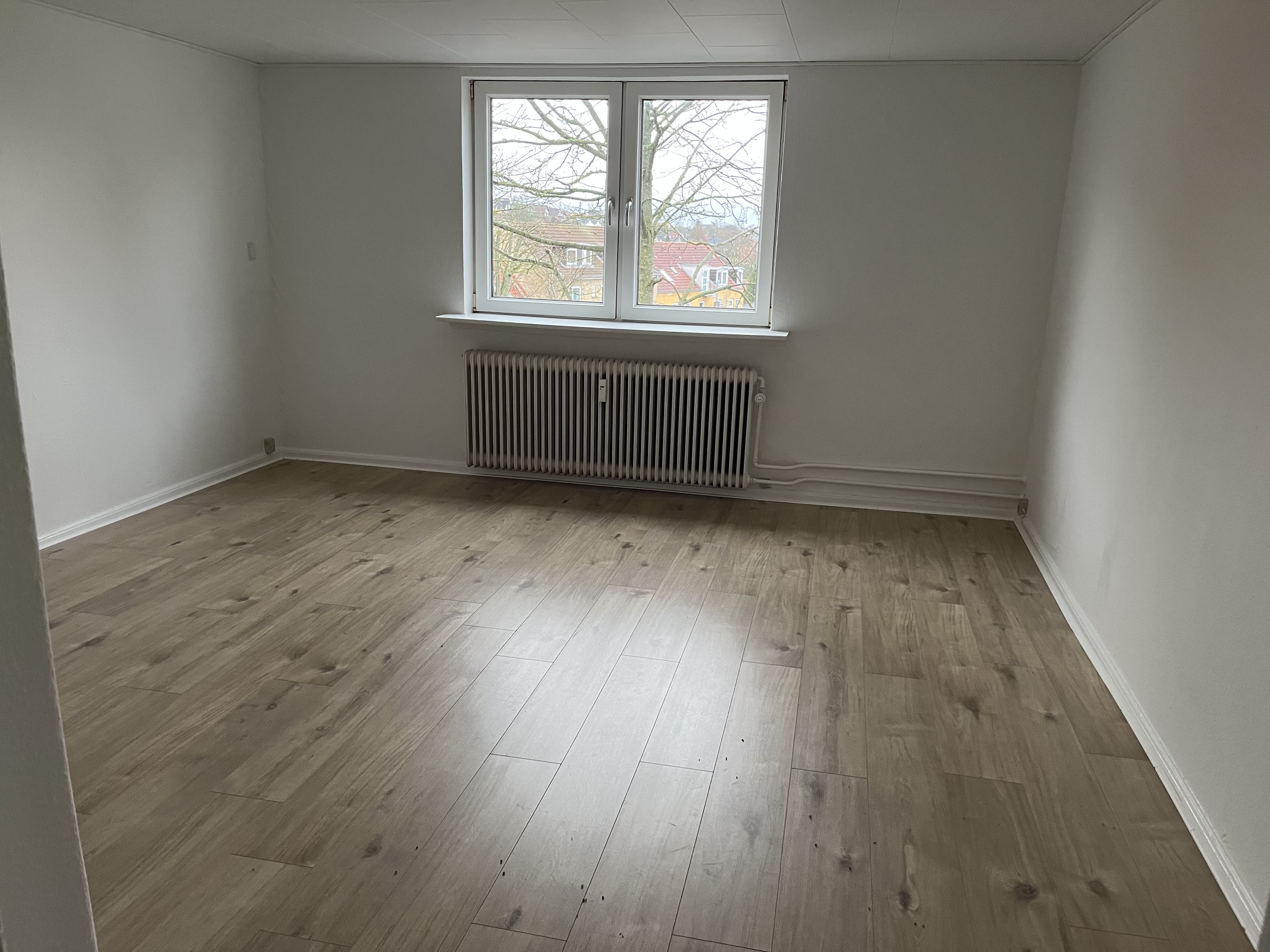 Lejligheden består af 2 værelser, en stue, køkken og bad.