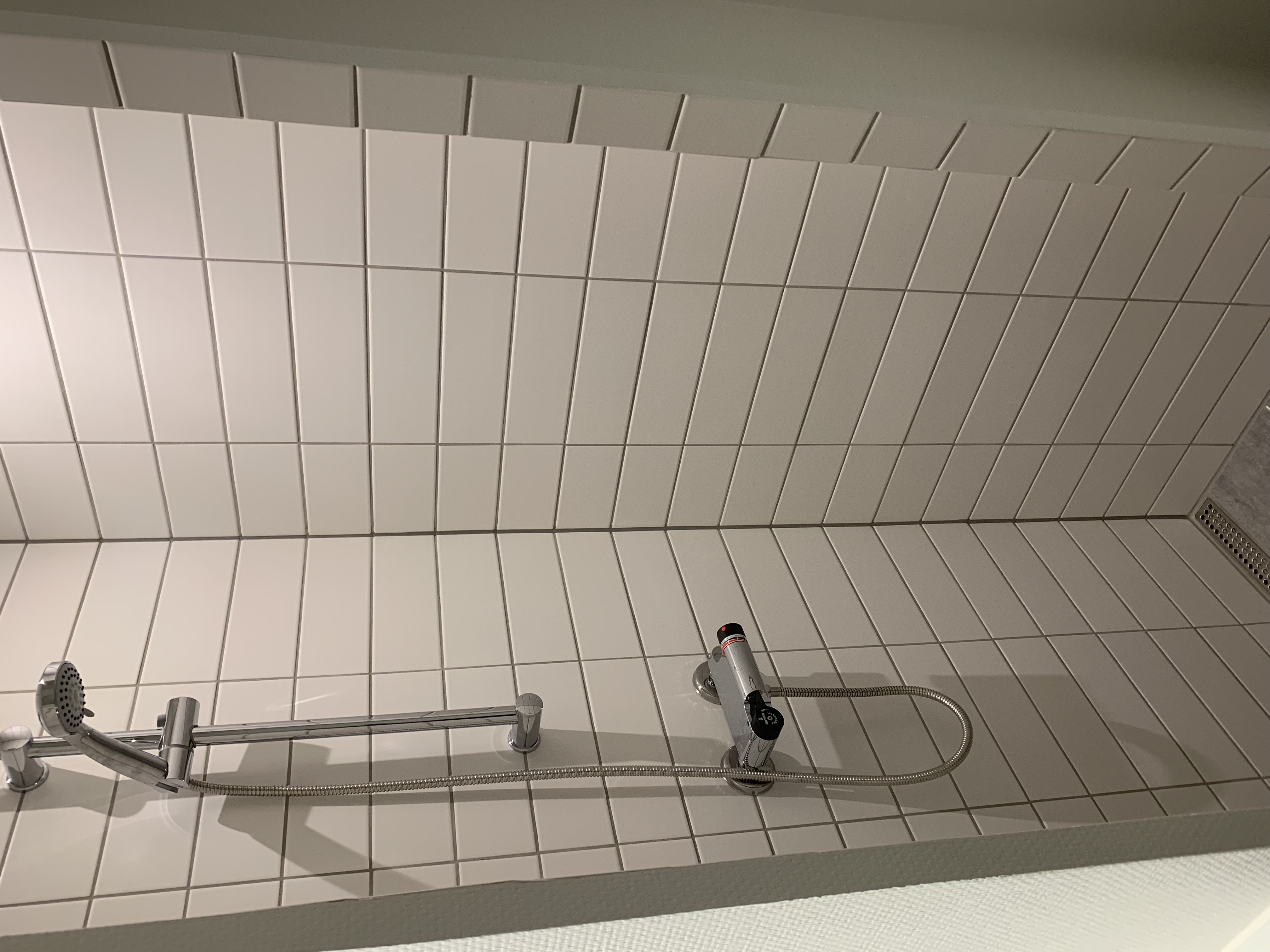 Her er også samme klinker, som i entréen og med gulvvarme.