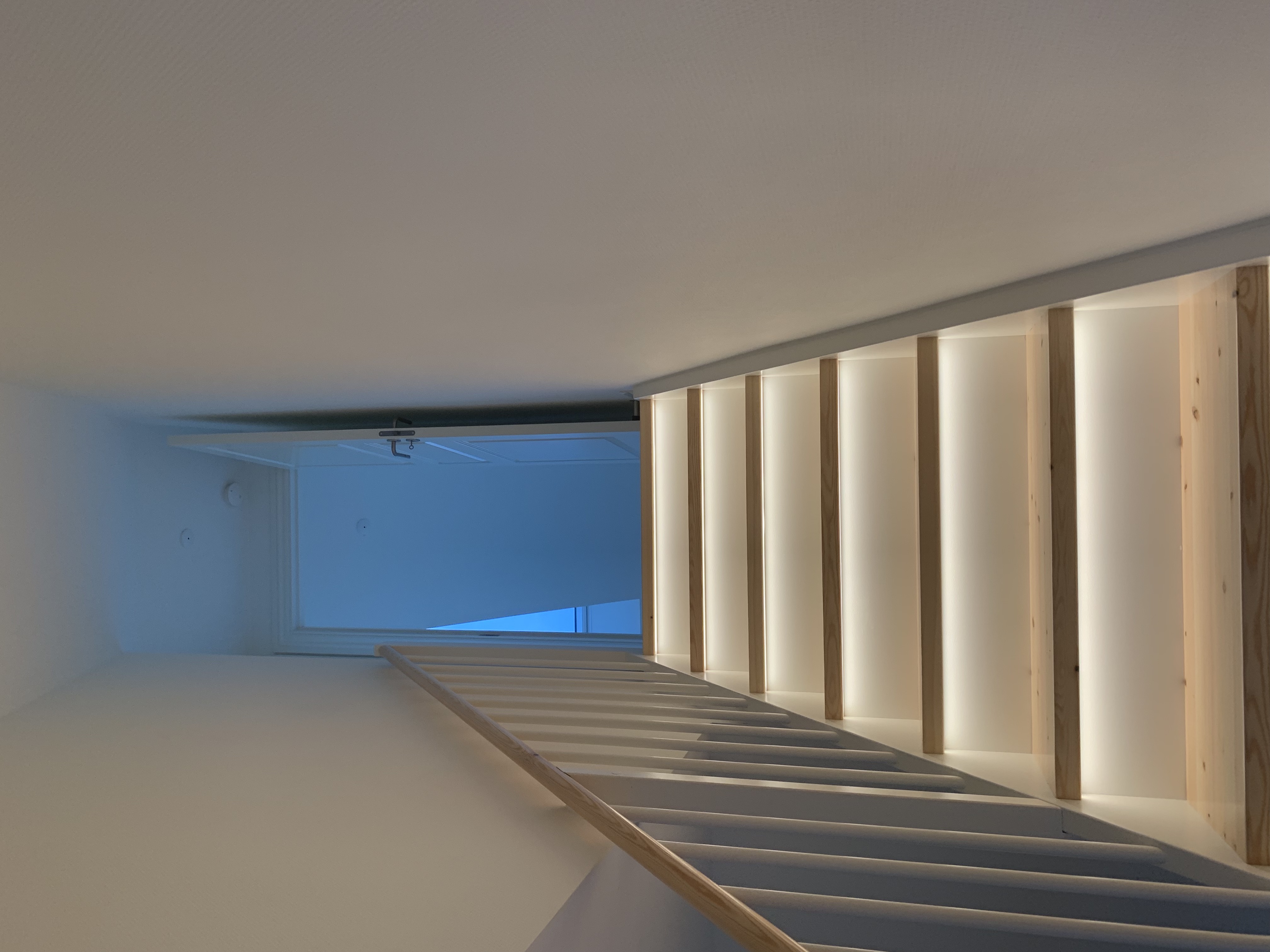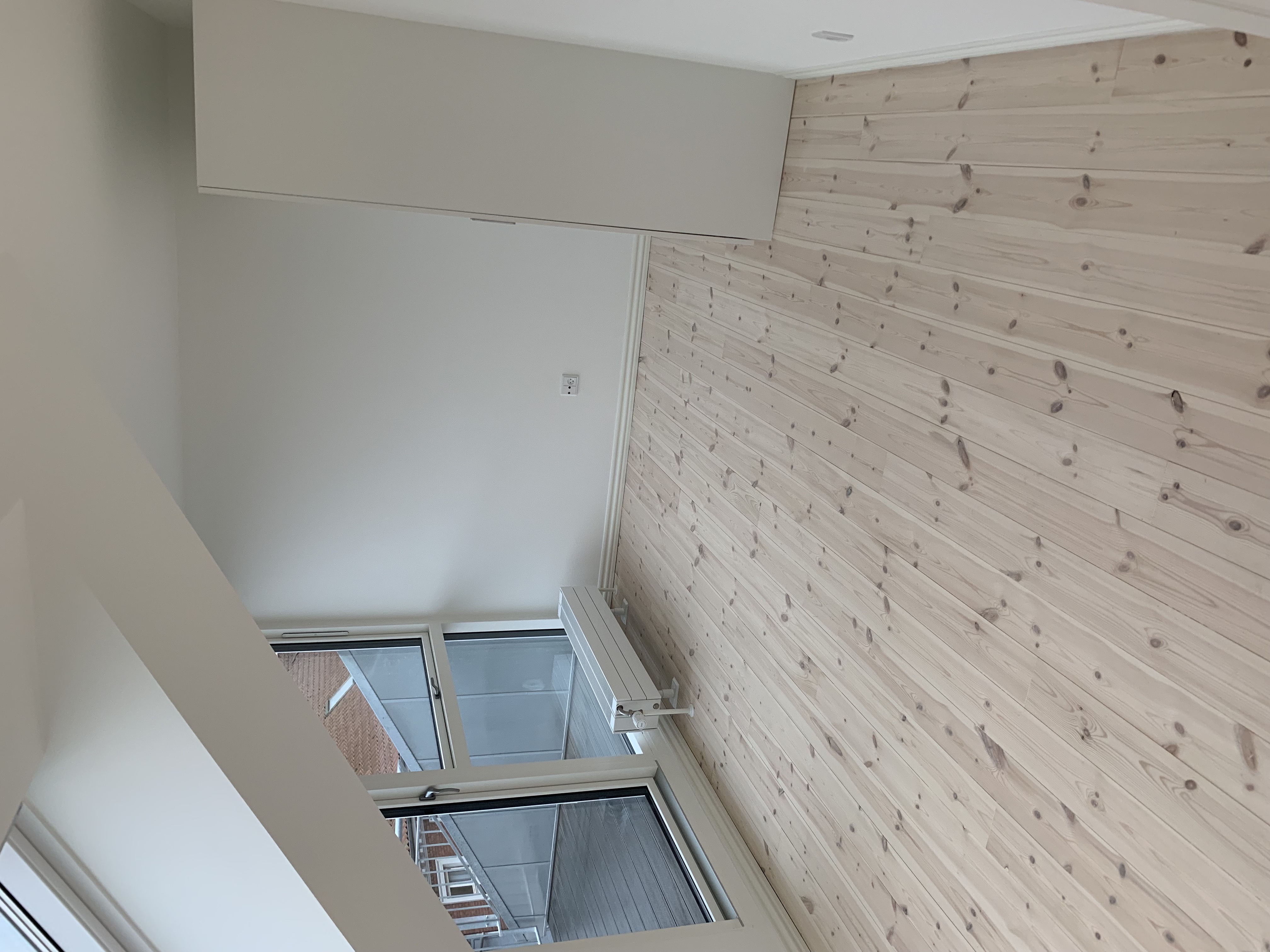 Fra entréen og lige frem træder du ind i det moderne lyse køkken, hvor der er lys både i overskabene med glaslåger, under overskabene samt under køkkeninventaret, som giver en hyggelig stemning I køkkenet er der alt i hvidevarer.