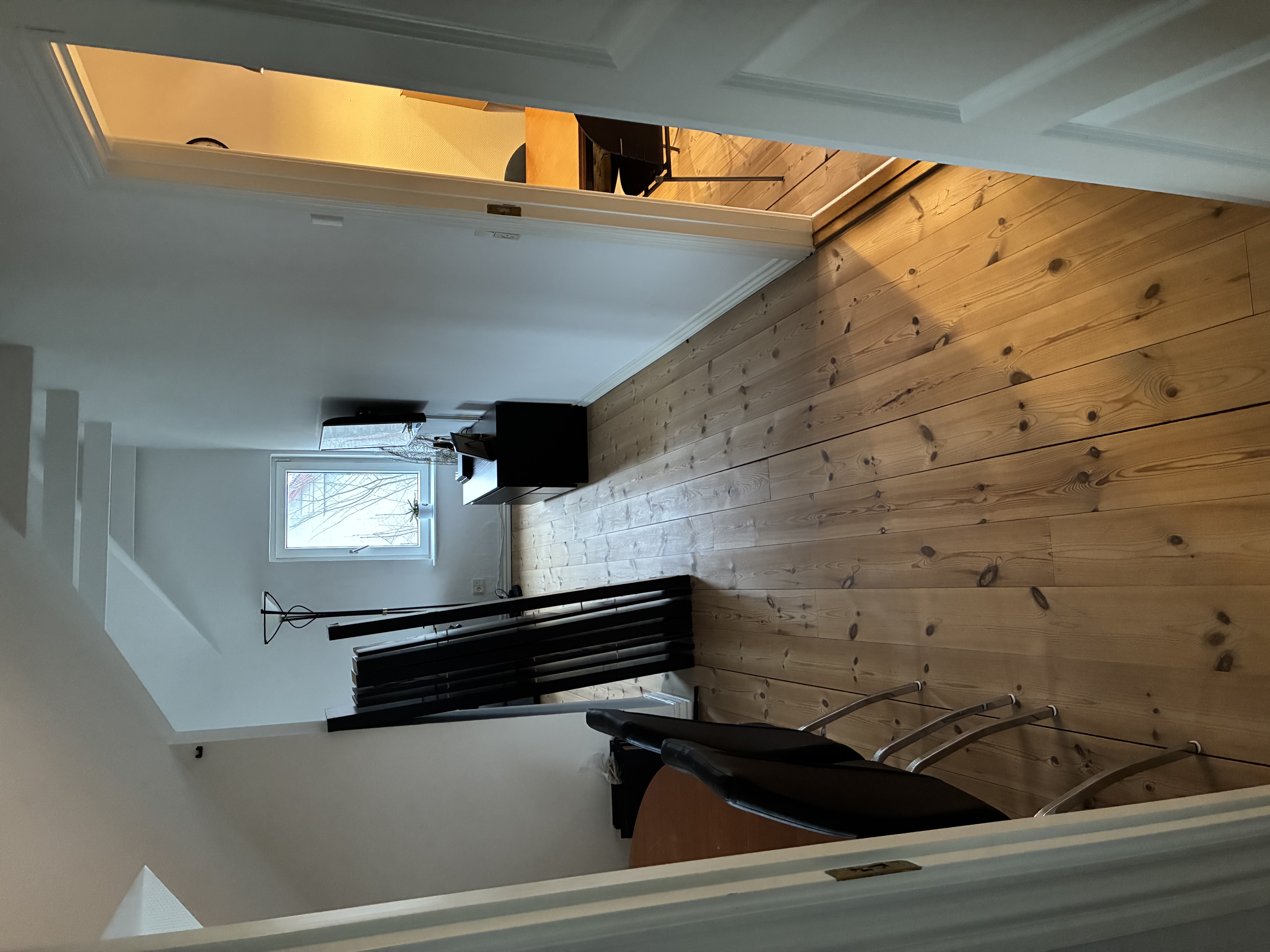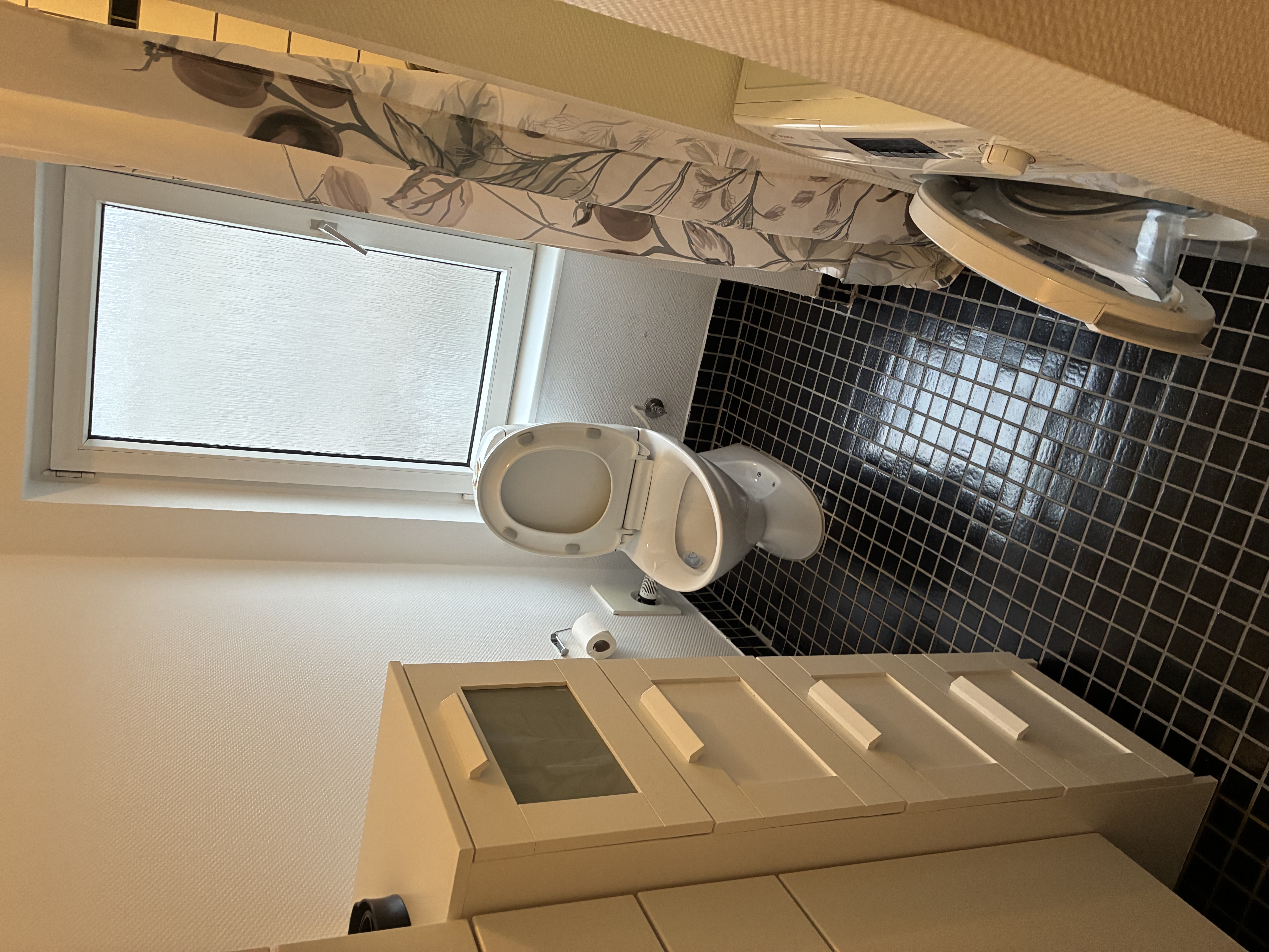 Med egen indgang til lejligheden har man trappen der fører op til lejligheden. Når du kommer op på første etage findes lejlighedens badeværelse på højre hånd. Her er der gulvarme og mulighed for tilslutning af egen vaskemaskine og tørretumbler.