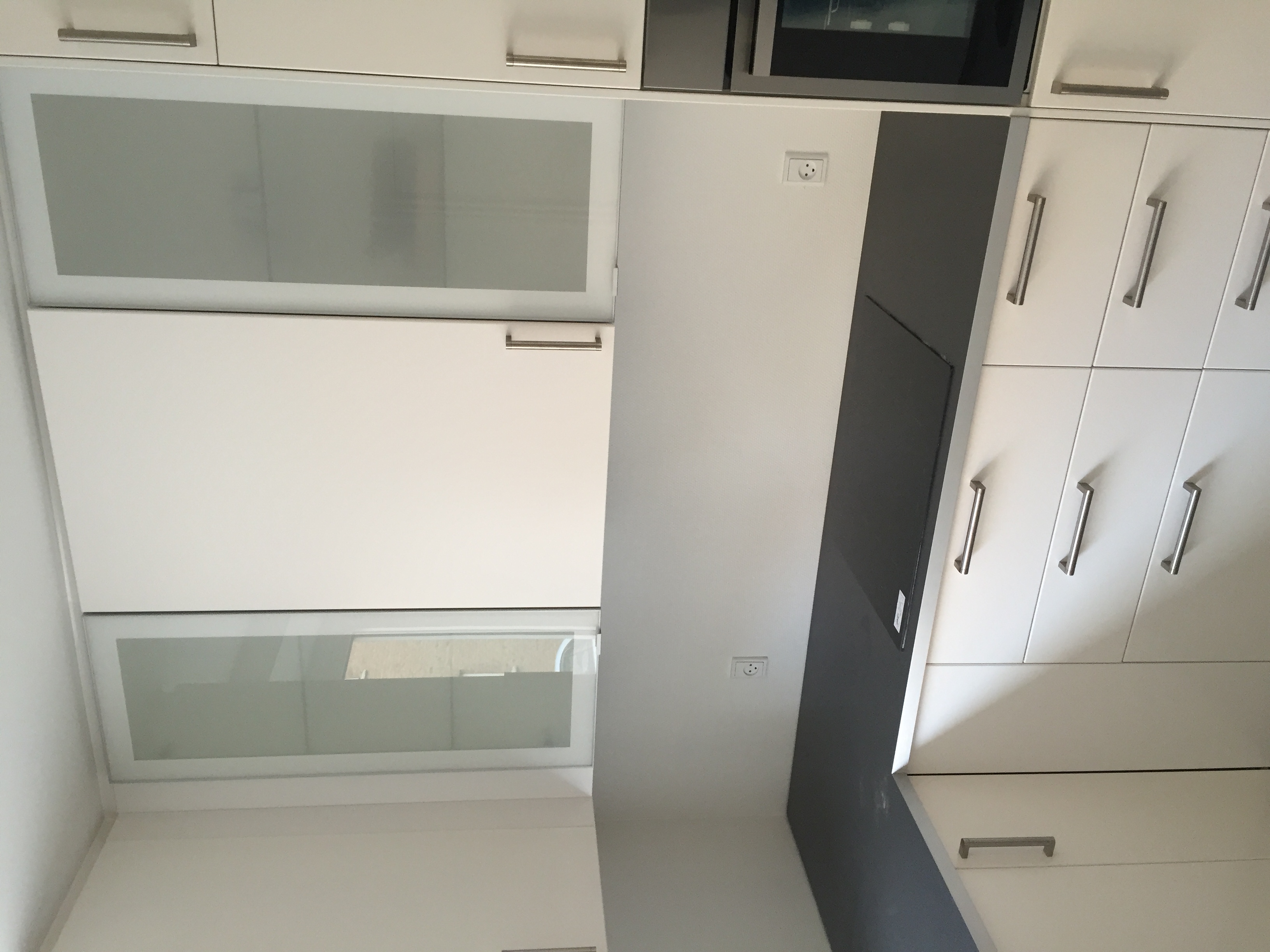 I køkkenet er i stilfulde hvide elementer med integreret køle/frys og opvaskemaskine.