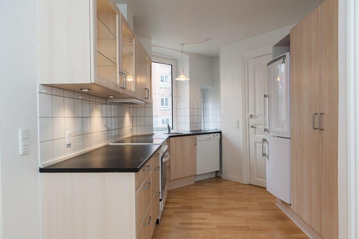 Totalt moderniseret lejlighed, nyere køkken med nyere hårdehvidevare (komfur, emhætte, køle/fryse skab og opvaskemaskine), flisebadeværelse med væghængt toilet, nyere gulve. Fælles vaskeri og flot fælles gårdanlæg. Huslejen er inkl. vand (normalt 400-500 kr. pr. måned) Vi tilbyder 2 timers håndværker hjælp uden ekstra beregning, fra indflytning og 14 dage frem. Der må ikke holdes husdyr.