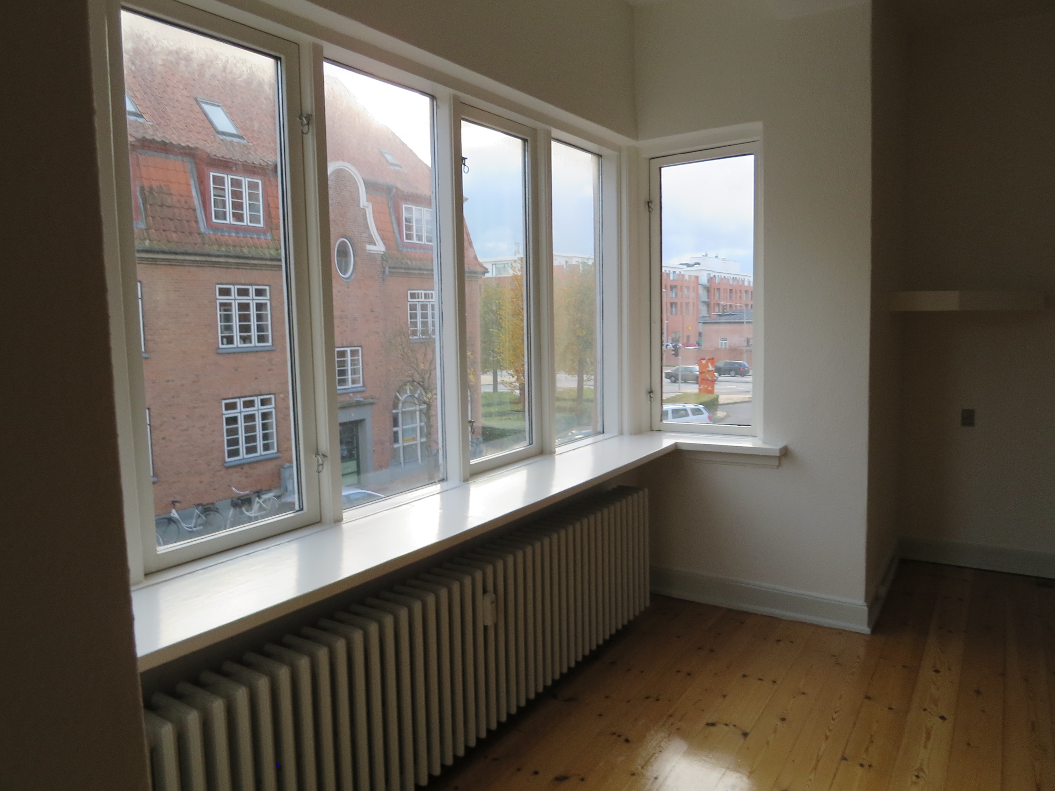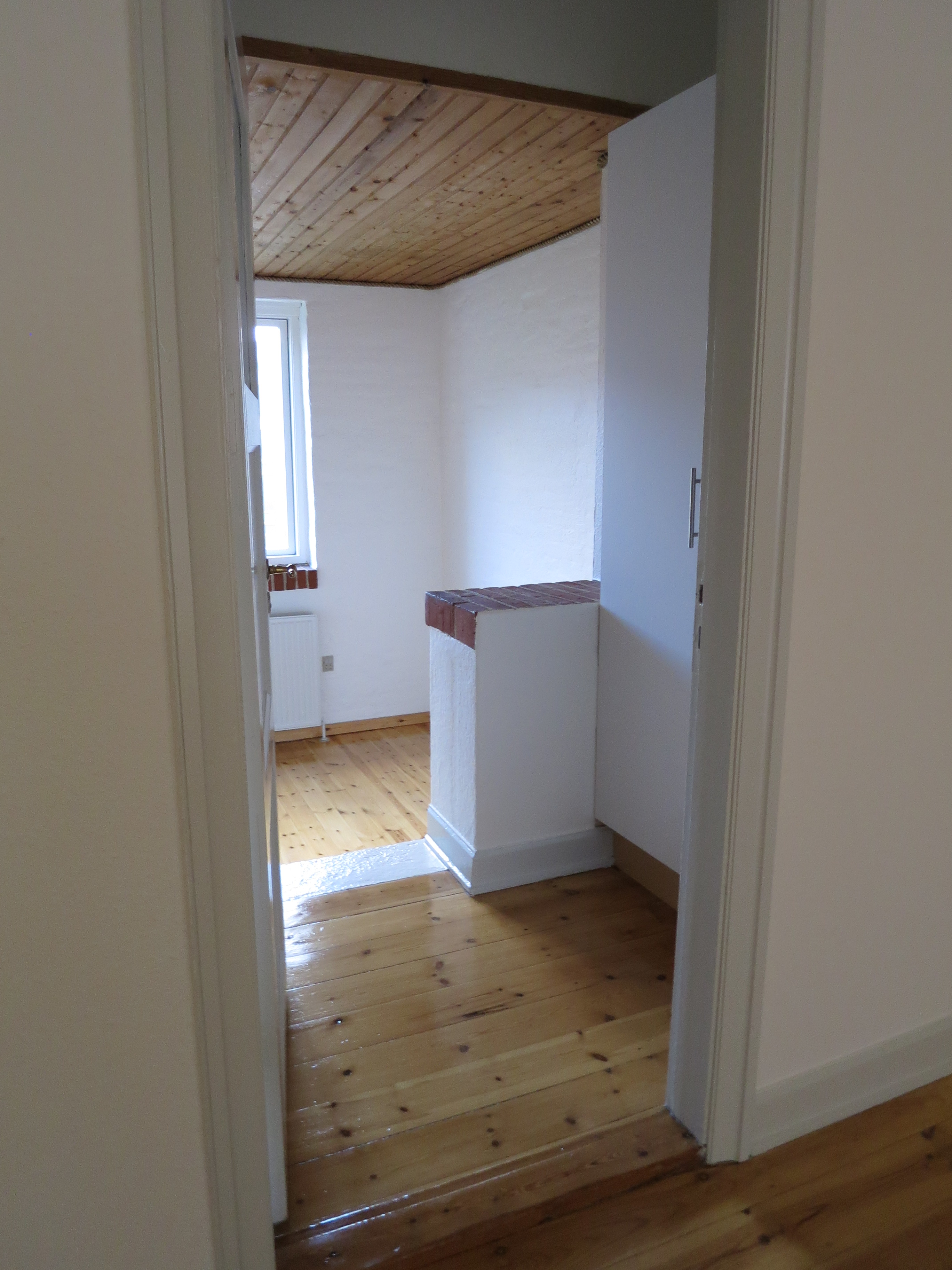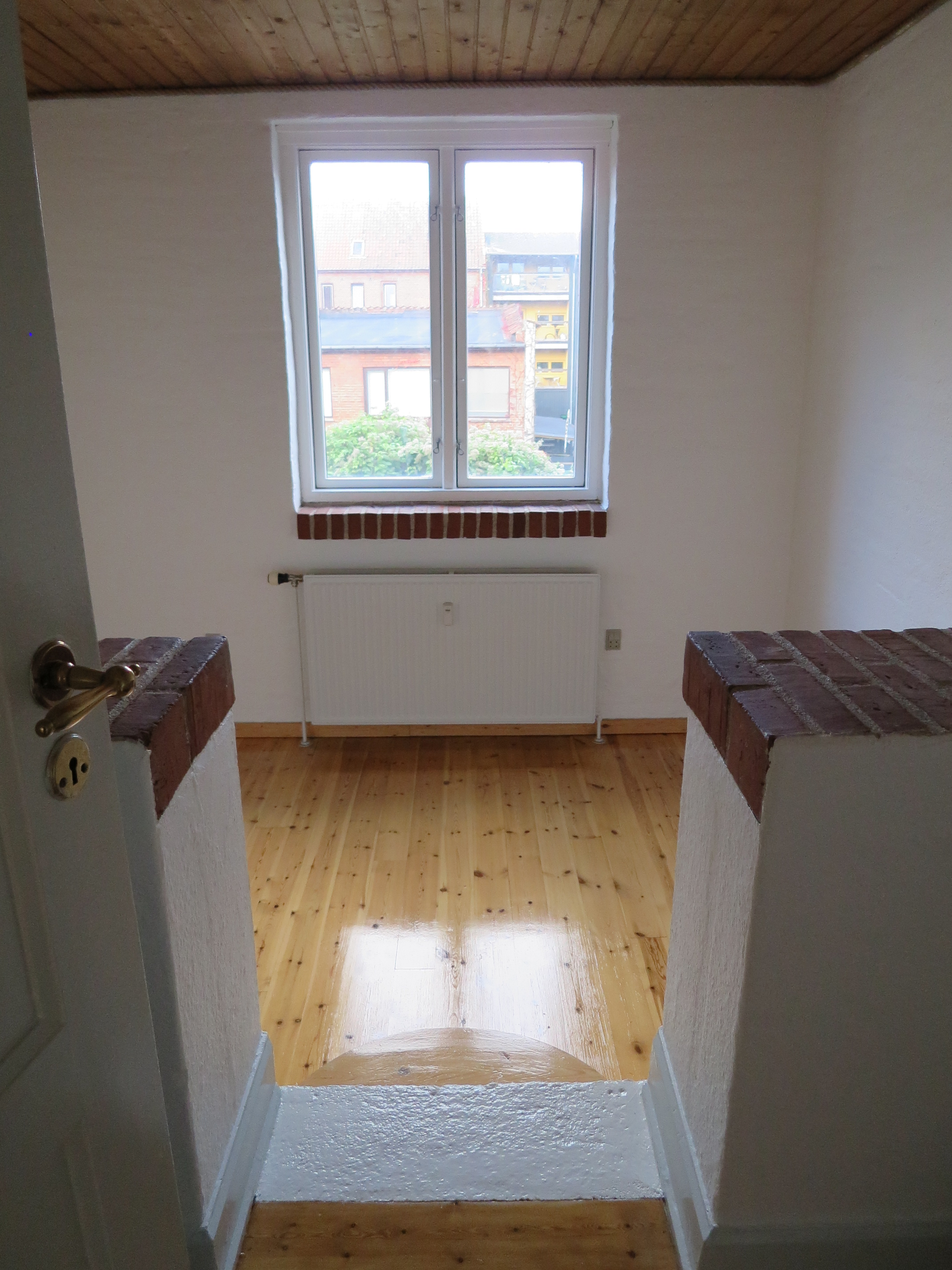 IKKE egnet til bofællesskab/børn, da der er 1 soveværelse og 2 stuer uden dør imellem.