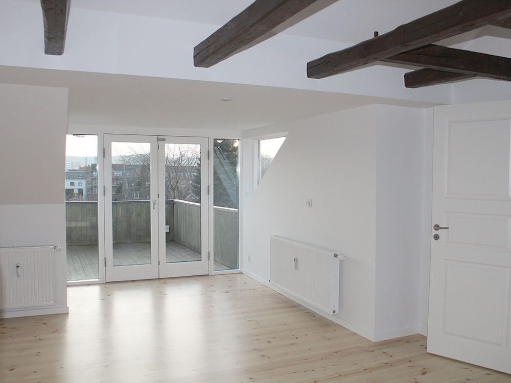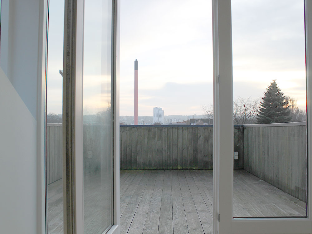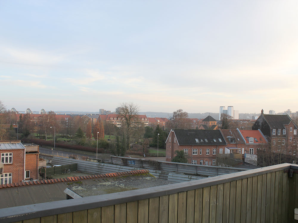Denne 3 værelses taglejlighed i Vejle er velegnet til den lille familie eller et ungt par som ønsker lidt ekstra plads. En super lækker taglejlighed med panoramaudsigt til Vejlefjordbroen og Bølgen. Ønskes der parkeringsplads, kan der leje en carport for enden af baggården.