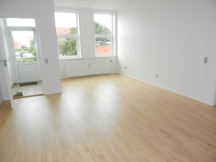 Lejlighed på 1. sal. Rummelig og velindrettet lejlighed med køkken og stue i ét, soveværelse, bad og et disponibelt rum. Der er parketgulv og klinker i lejligheden.