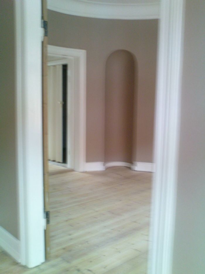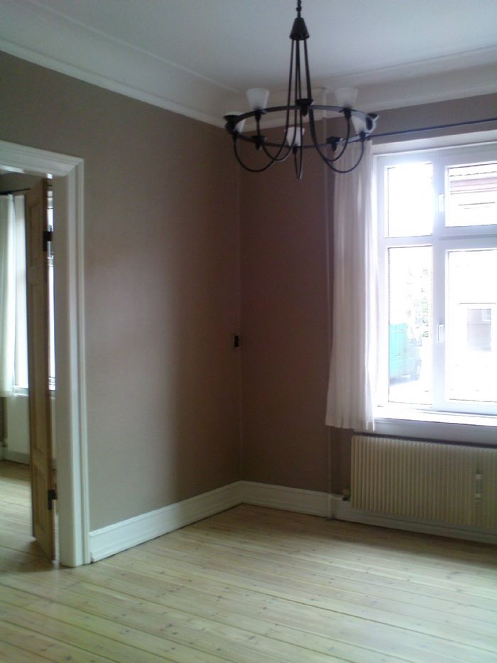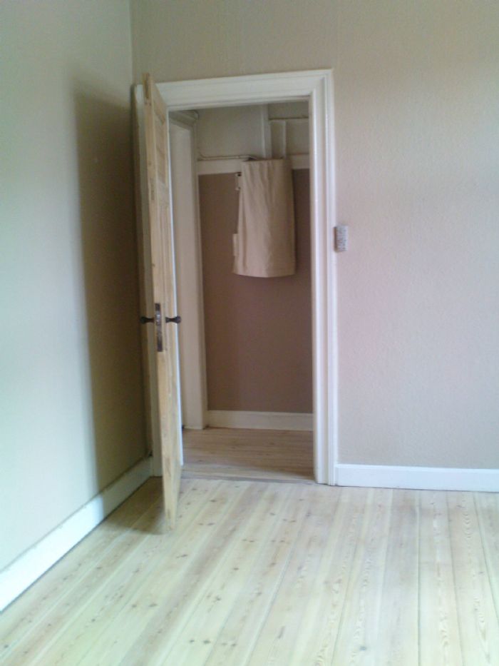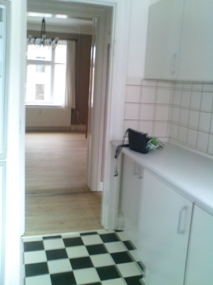 Hyggelig 3 værelses lejlighed med afhøvlede gulve og stuklofter udlejes. Lejligheden består af 3 store værelser/stuer, 1 entre, 1 lille gang, køkken og toilet/bad. Der er opvaskemaskine, komfur, emhætte og køleskab i lejemålet samt et lille depotrum. Adgang til stor vestvendt lukket gårdhave, cykelskur og til fælles vaskeri. I gårdhaven er der etableret plantekasser til brug for dyrkning af grøntsager og blomster hvis man har lyst. Alle vægge og lofter i lejligheden er hvidmalede i dag.