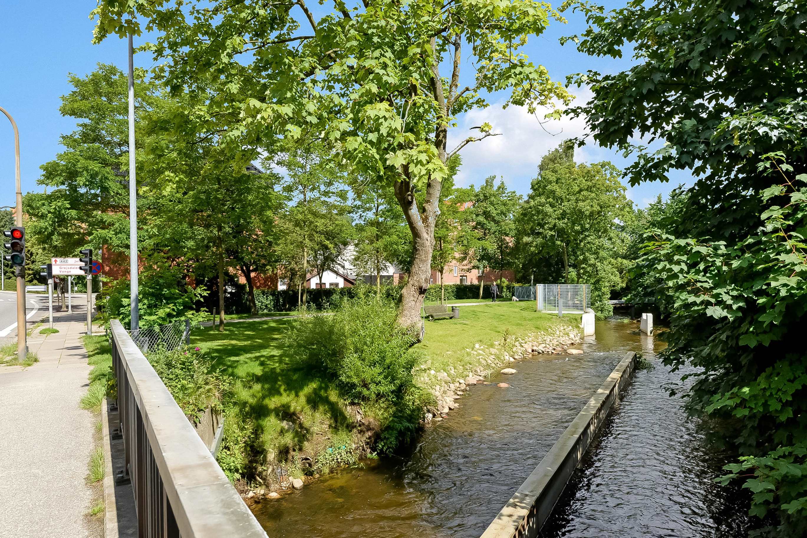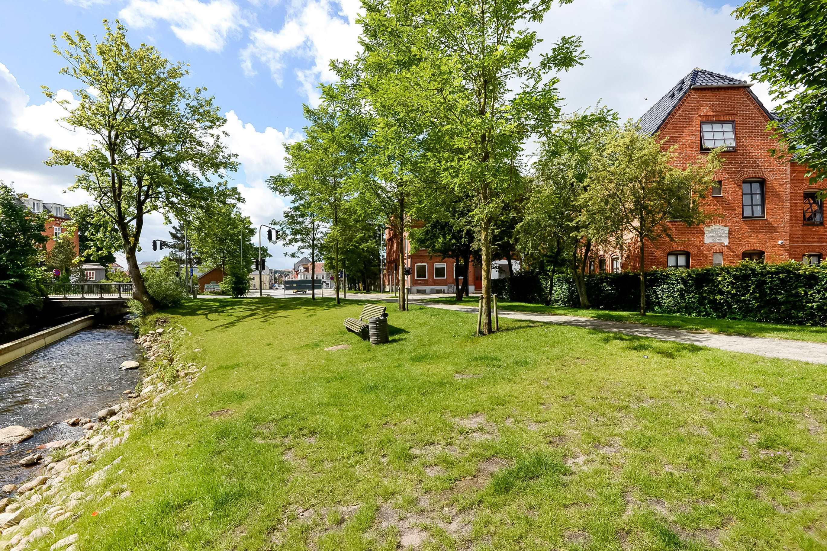 En helt fantastisk 1. sal lejlighed med central beliggenhed i Vejle centum med parkering i gården og fælles have ned til Grejs Å samt dit eget private cykelskur.