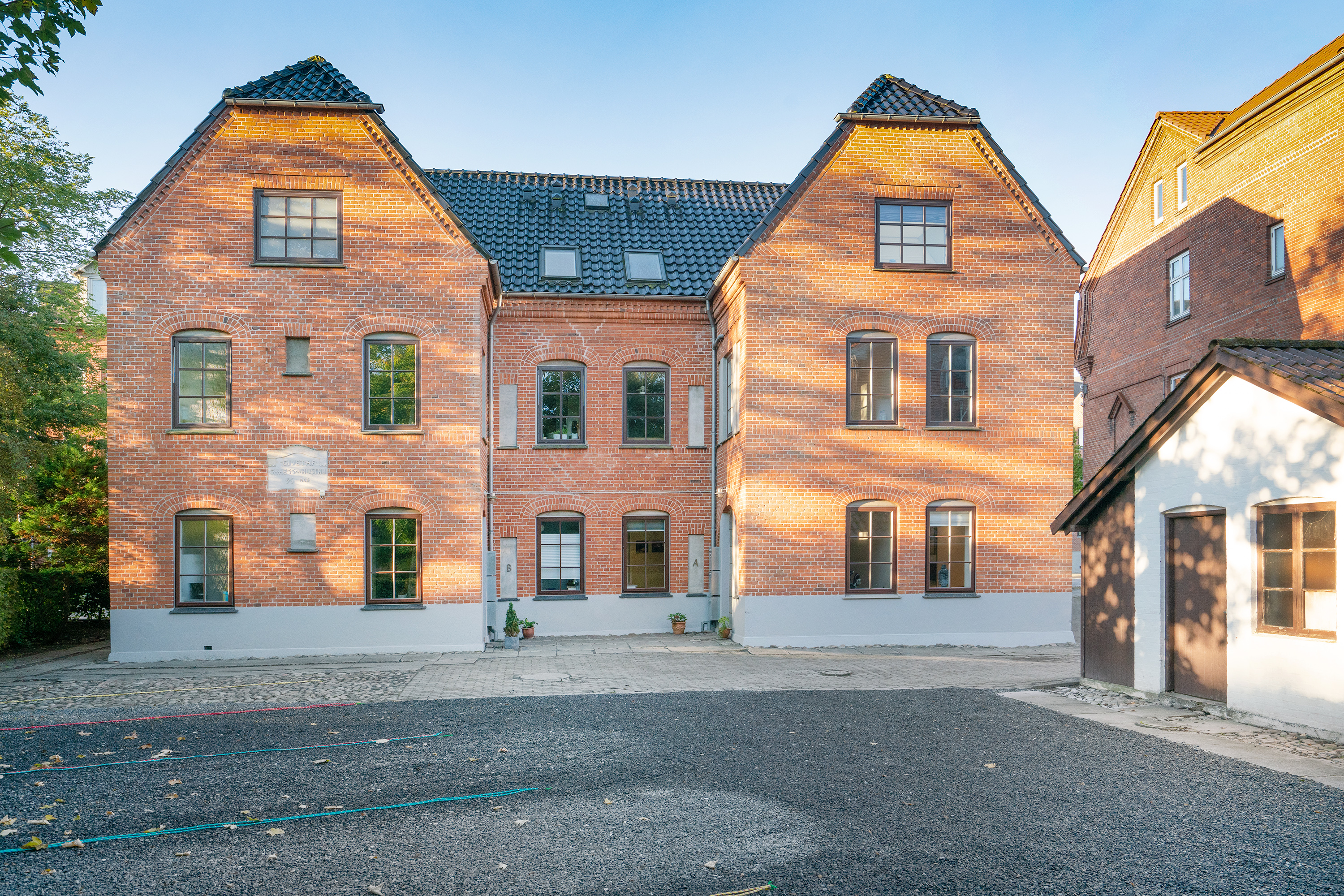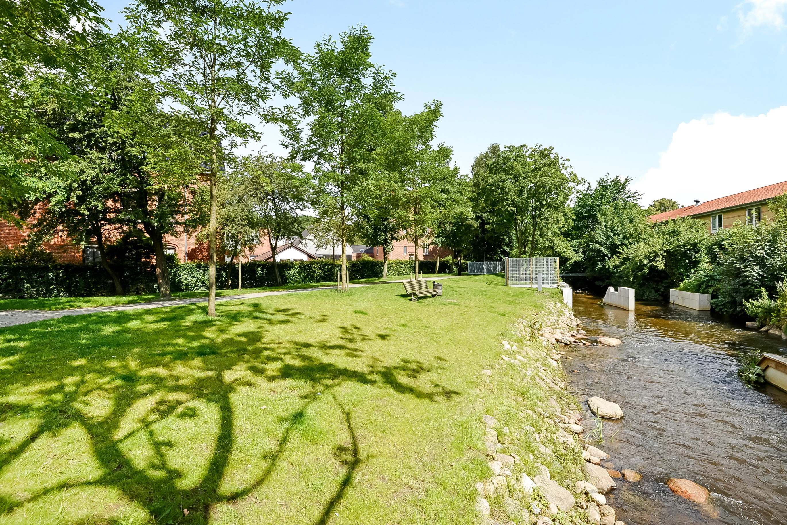 A first floor apartment with garden down to Grejs Å and closed parking for you car and small shed for your bikes.