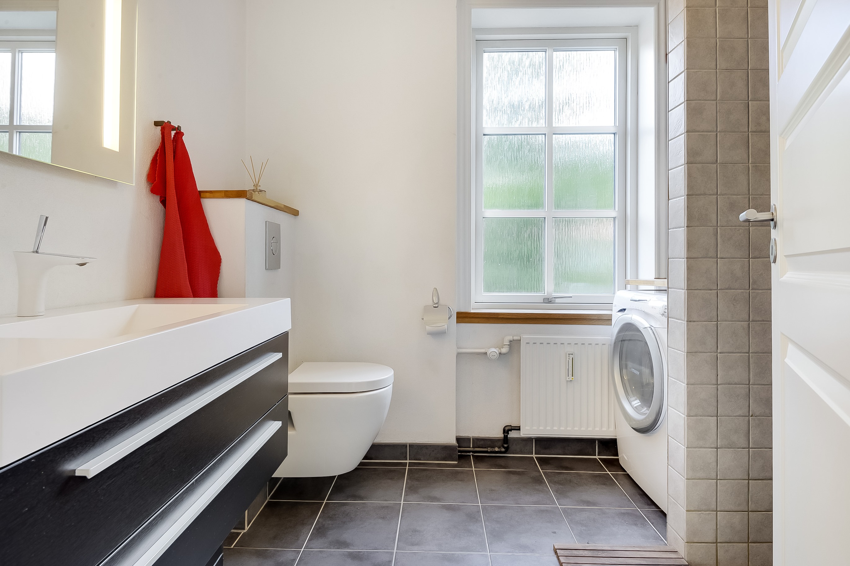 Stor rummelig køkken med mulighed for spiseplads samt herlig stue med lille kontor samt lækket nyere badeværelse. Vaskemaskine og tørretumbler combimaskine fra AEG.