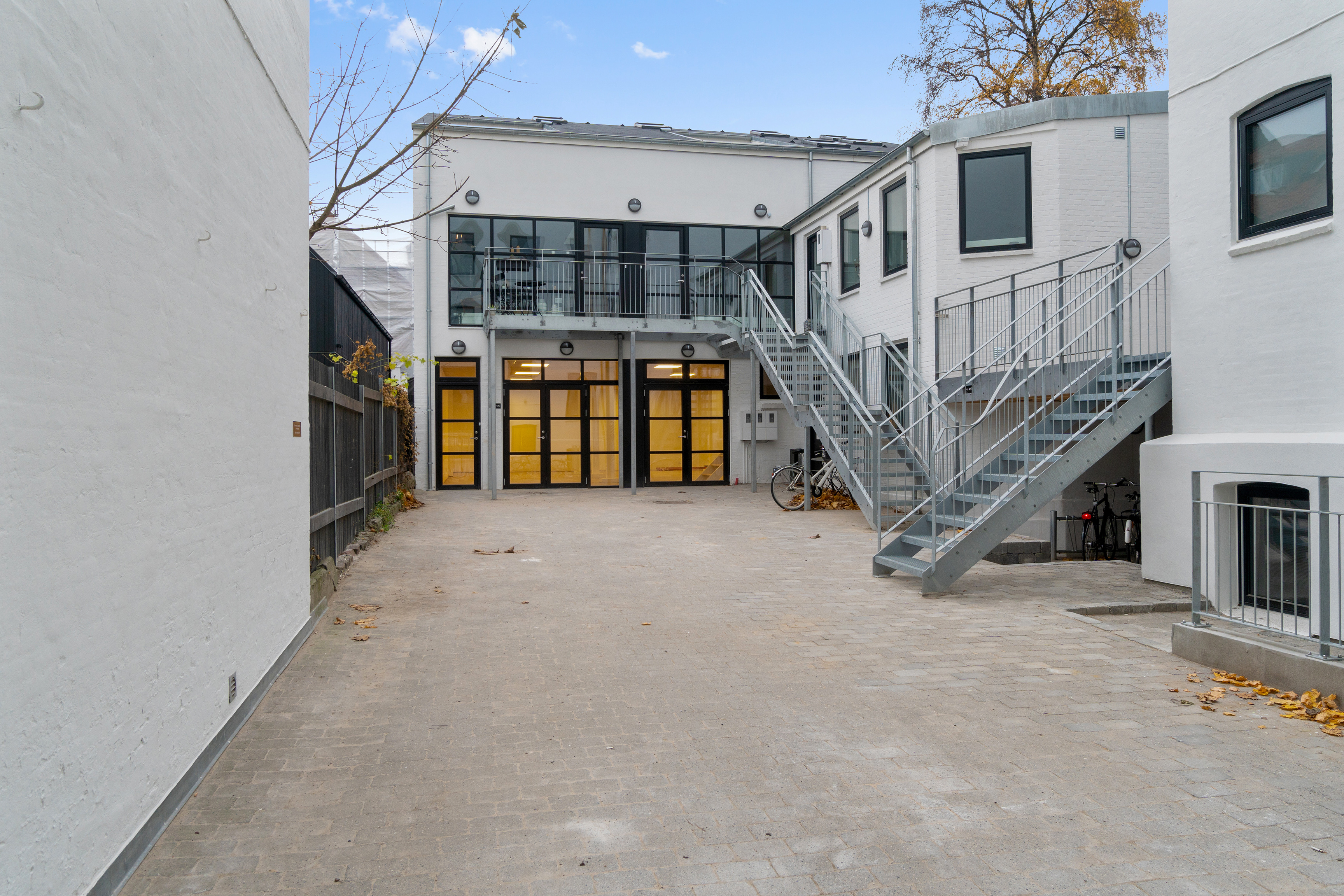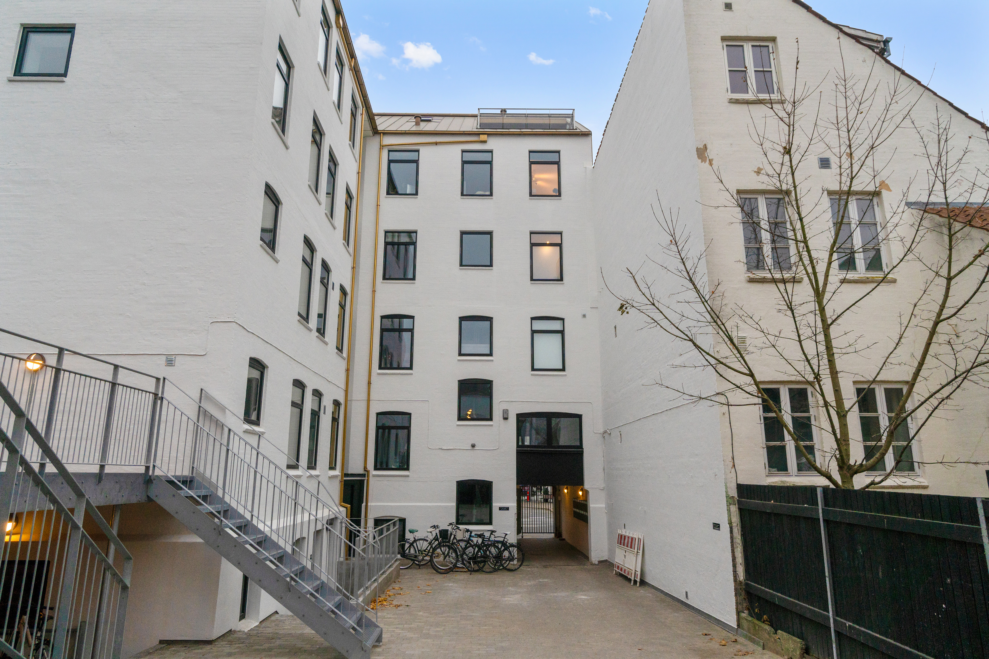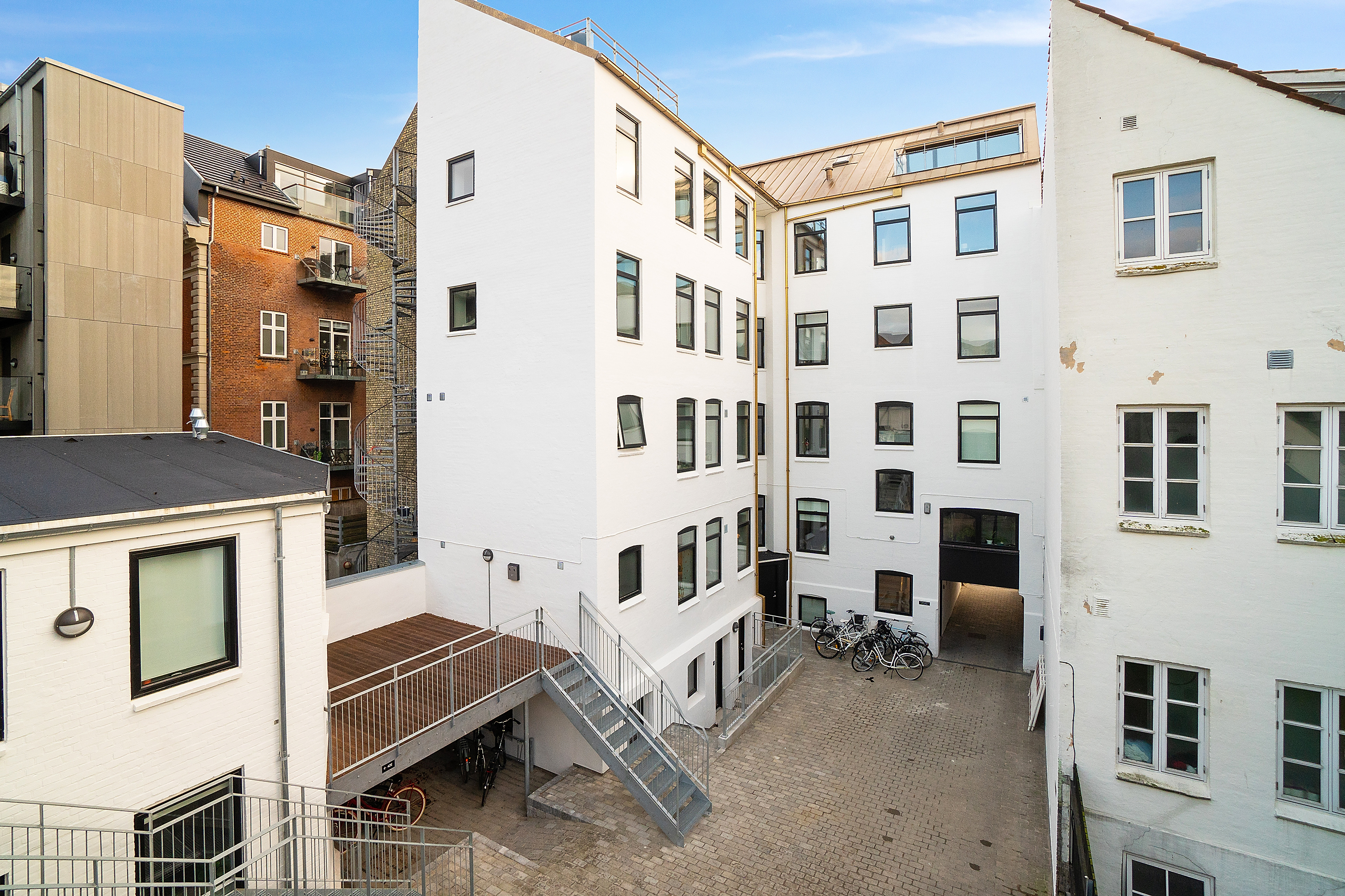 Ejendommen er beliggende centralt i midtbyen Aarhus C og blev renoveret i 2017. Lejemålet er i 2 etager og med altan.