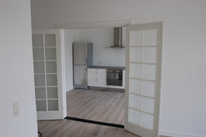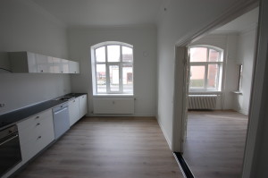 Flot stor og lys 3 vær. lejlighed med pænt og stort spisekøkken. Dejligt badeværelse med stor bruseniche. Nye trægulve og stuklofter o.lign. i hele lejligheden.