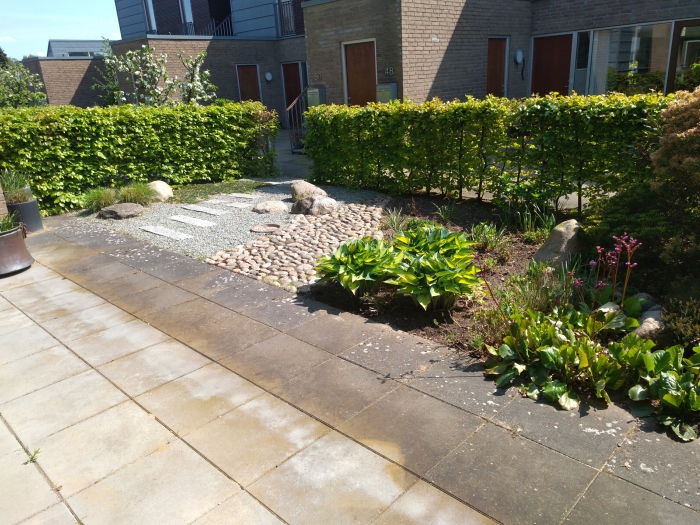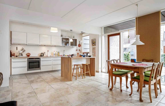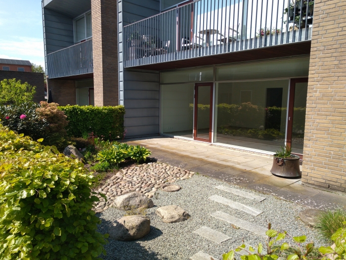 Fra stuen er der adgang til egen lille sydvendt have medoverdækket terrasse.