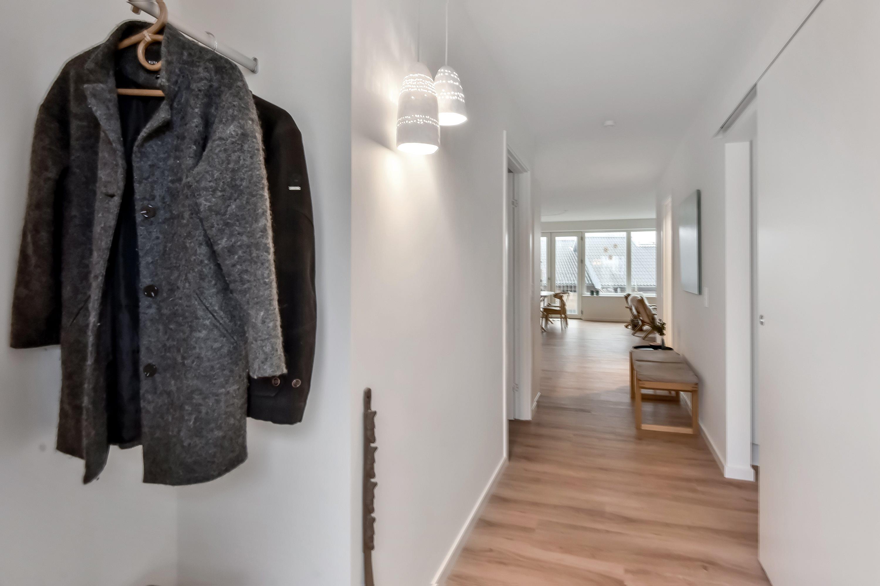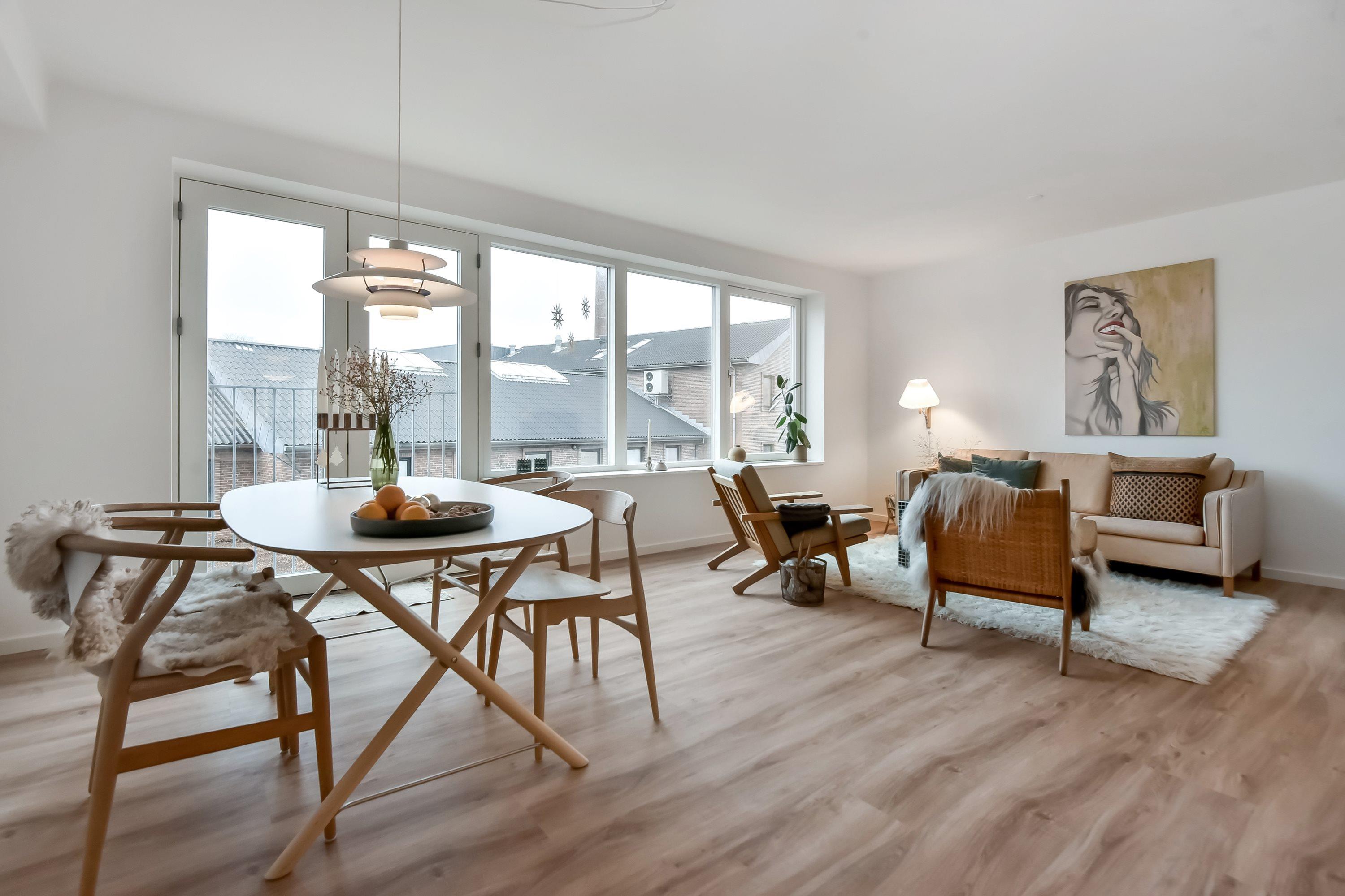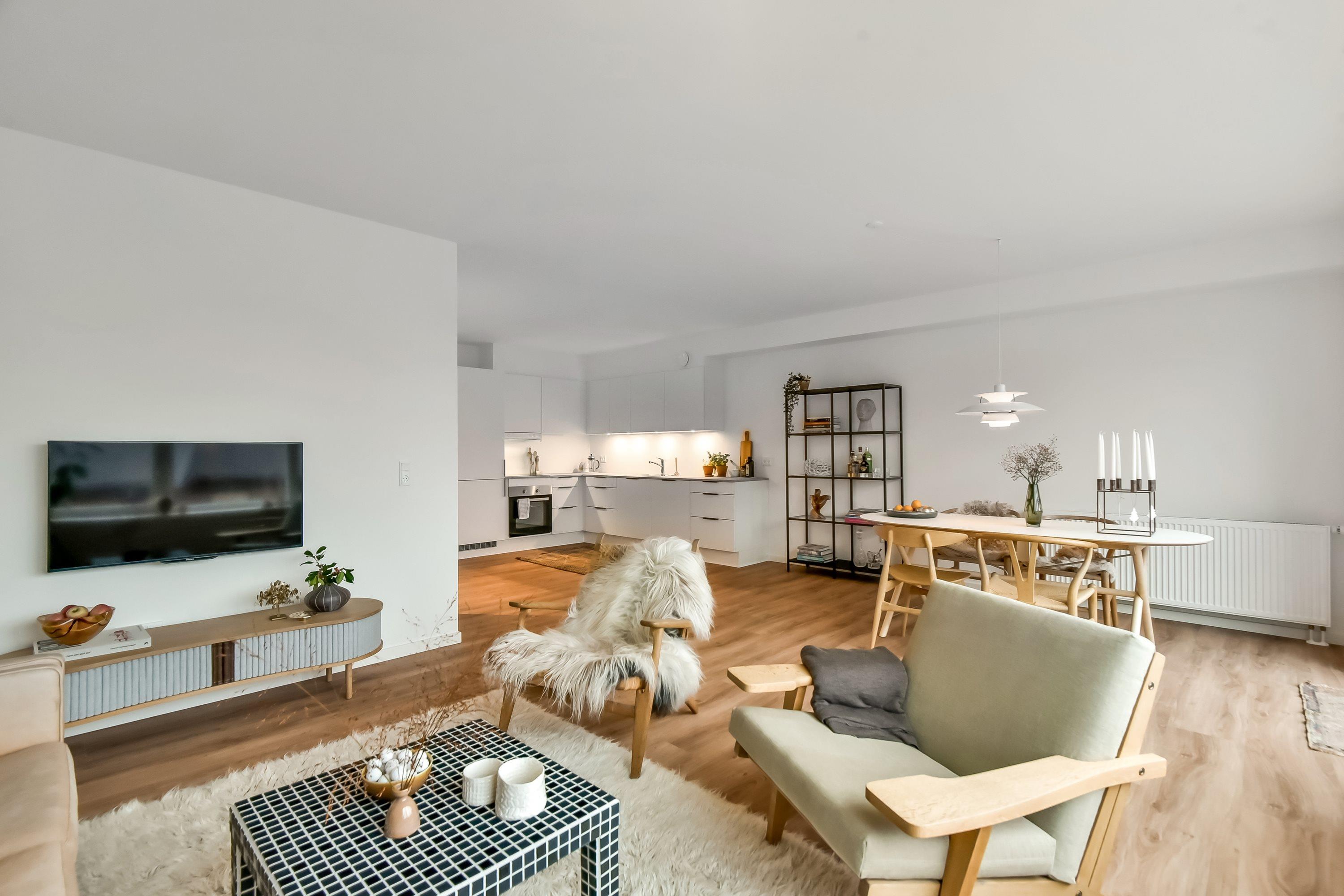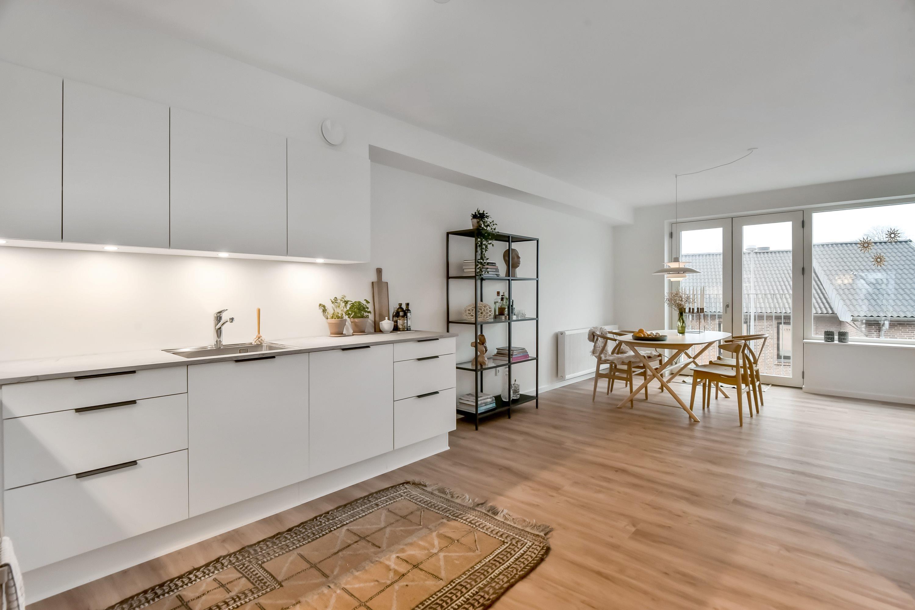 Velkommen i hjertet af Herning!😍 Dette moderne og bæredygtige byggeri ligger centralt, kun 2 minutters gang fra Vestre Anlæg, 3 minutter fra gågaden og 4 minutter i bil til motorvejen.Boligen strækker sig over 98 m² og byder på en privat skurplads samt parkering. Indretningen inkluderer en funktionel fordelingsgang, to lyse værelser og et rummeligt badeværelse med gulvvarme. I køkkenalrummet finder du et stilfuldt HTH-køkken med integrerede hvidevarer.Fra den brede franske altan kan du nyde aftensolen, mens mekanisk ventilation sikrer et sundt indeklima. Der er også en dejlig østvendt altangang, perfekt til morgenkaffen. Tag trappen eller elevatoren op til den 150 m² store fælles tagterrasse, som er indrettet med hyggelige møbler og plantekasser.Alle træmaterialer er FSC-certificeret, og bygningen har energimærke A2015, hvilket gør den til et grønt valg for fremtidige beboere.