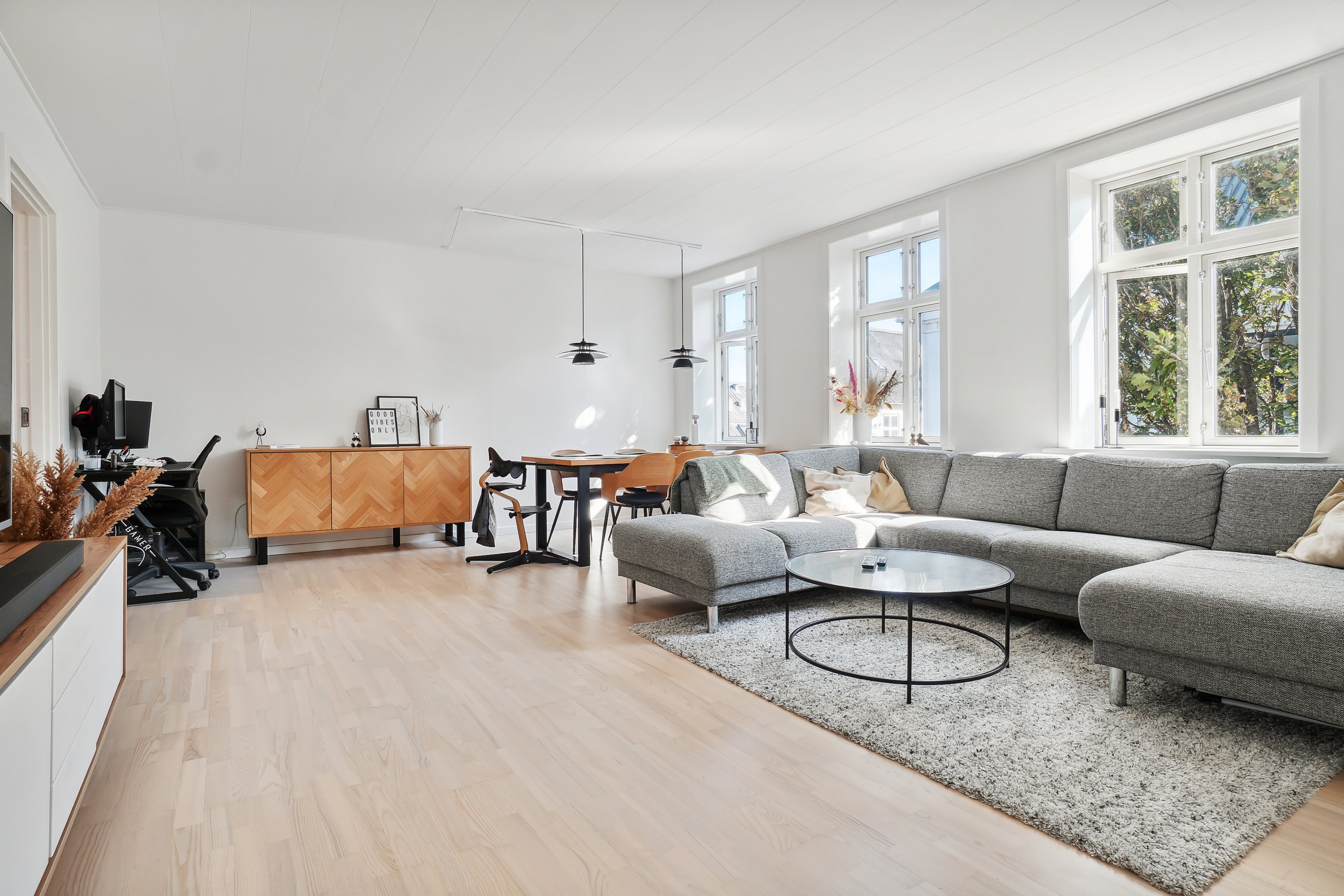 Stor og rummelig lejlighed udlejes pr. 01-03- 2026 beliggende i Korsgade, Thisted. Lejligheden er 98 m2, og er beliggende på 1. sal. Der er stue, soveværelse, værelse, fordelingsgang med adgang til bad og gang til fælles p- plads. I bad er der VM og TT. I køkkener der køleskab, komfur, emhætte og OPV.