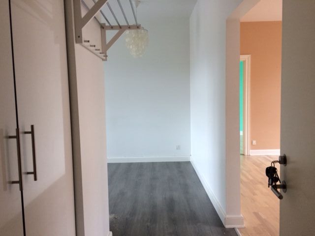 Stor lys lejlighed lille Entre, to værelse samt et gennemgangs værelse, stue, køkken med spise plads i køkkenet er der mulighed for installering af egne vask/tørretumbler og opvaskemaskine