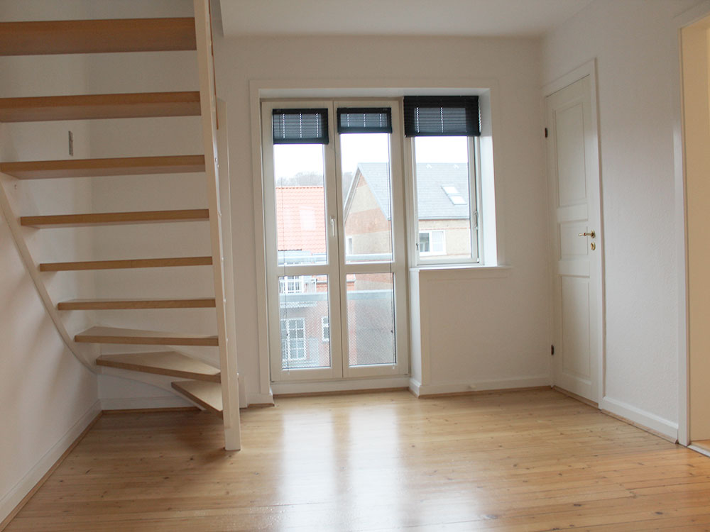 Denne 4 værelses familiebolig ligger på 2. sal og er fordelt på to etager, hvilket giver en lys, rummelig og indbydende atmosfære. Her bor du lige overfor Føtex ved havnen og i gåafstand til både banegården, strøget og tæt på motorvejen, hvilket gør hverdagen nem og fleksibel for både pendlere og familier.