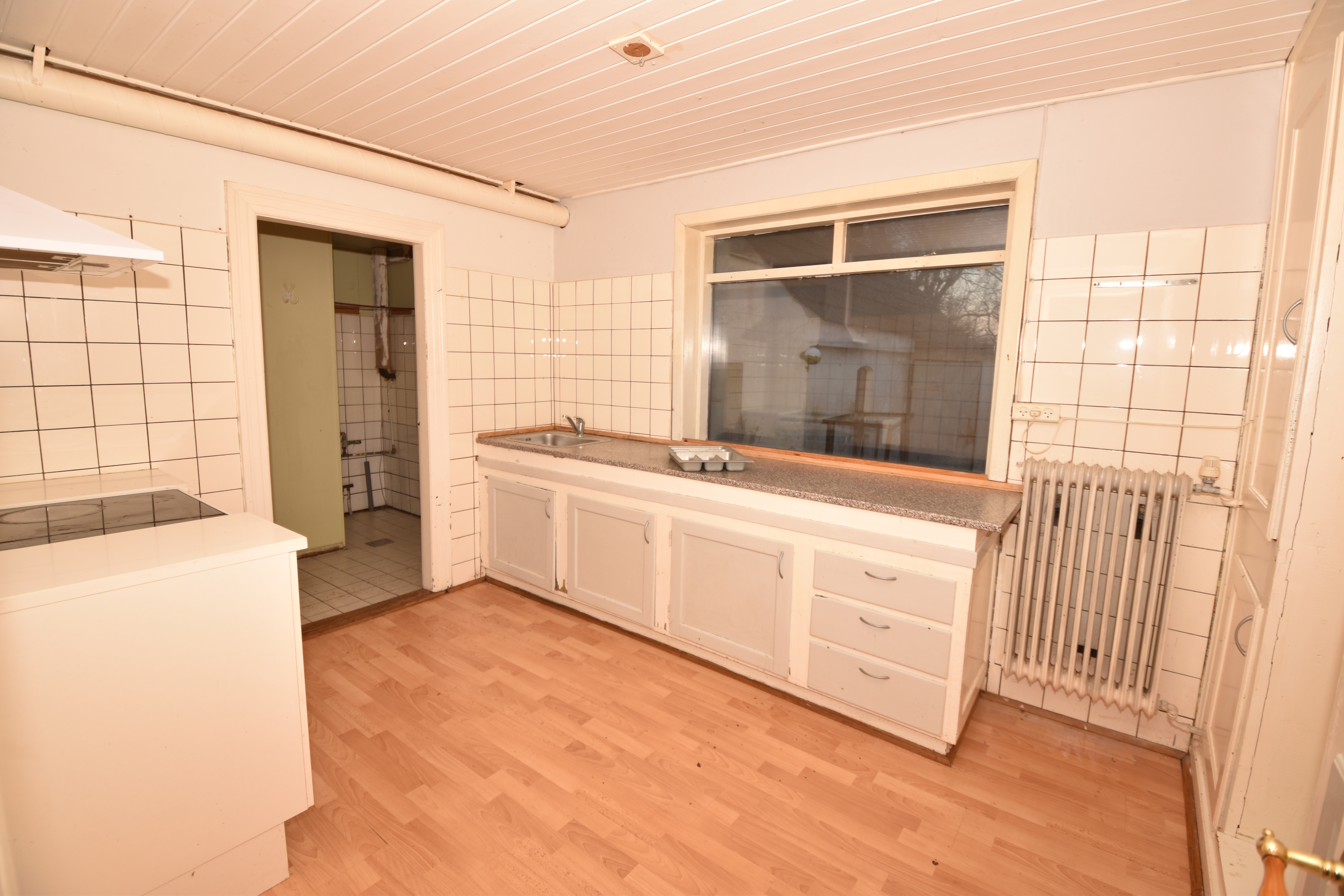 Til ejendommen hører garage på 15 m² og udhus på 18 m² med skorsten, brændeovn og varmeinstallation med måler.