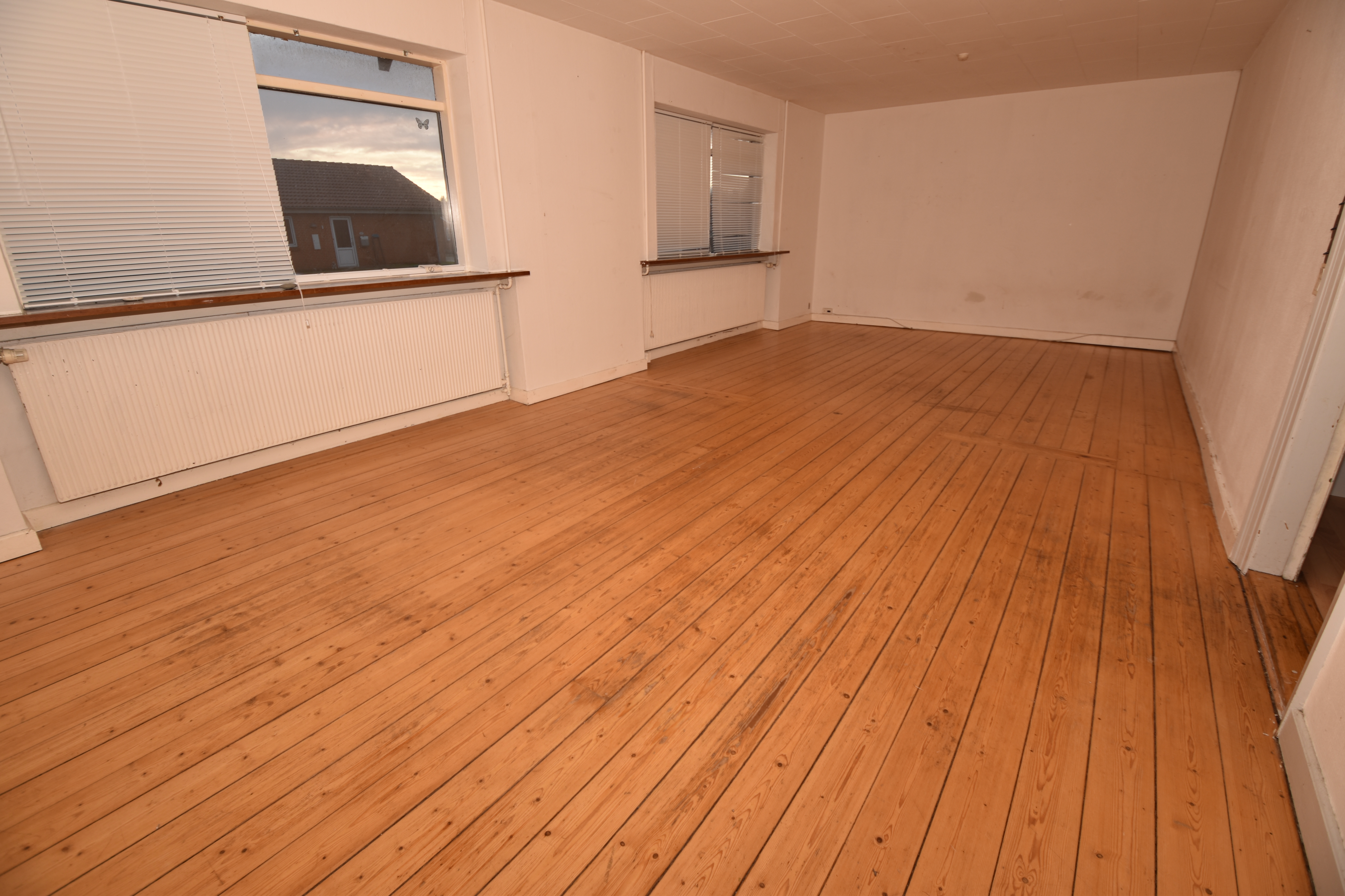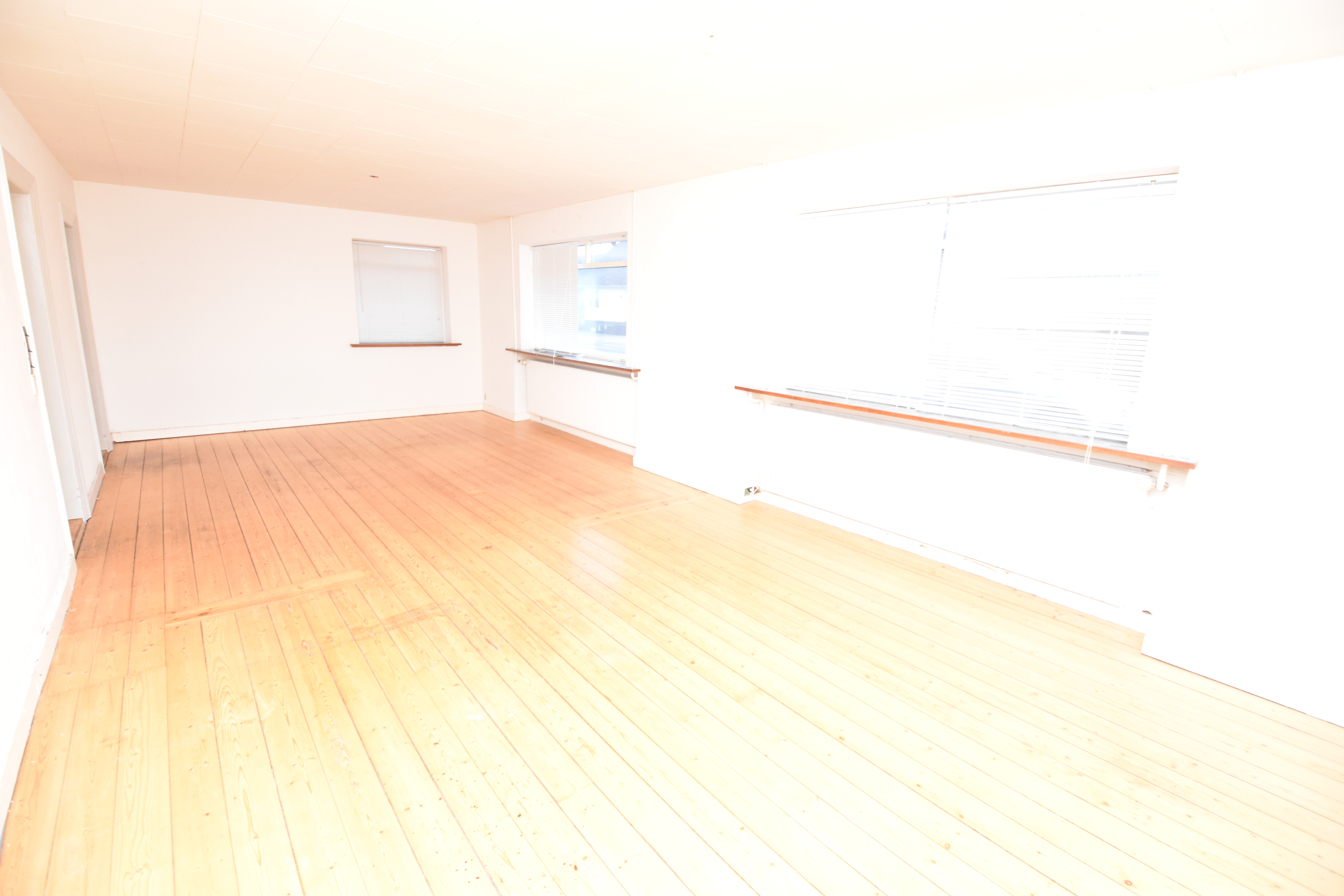Fra entreen er der adgang til ejendommens store stue, hvorfra der er adgang til ejendommens gamle køkken. Fra køkkenet er der adgang til ejendommens bagindgang, hvor der er noget varmeinstallation, og fra baggangen er der adgang til ejendommens toilet med en bruseniche. 1. salen er indrettet med repos og 4 værelser – 2 regulære værelser og 2 noget åbne værelser.