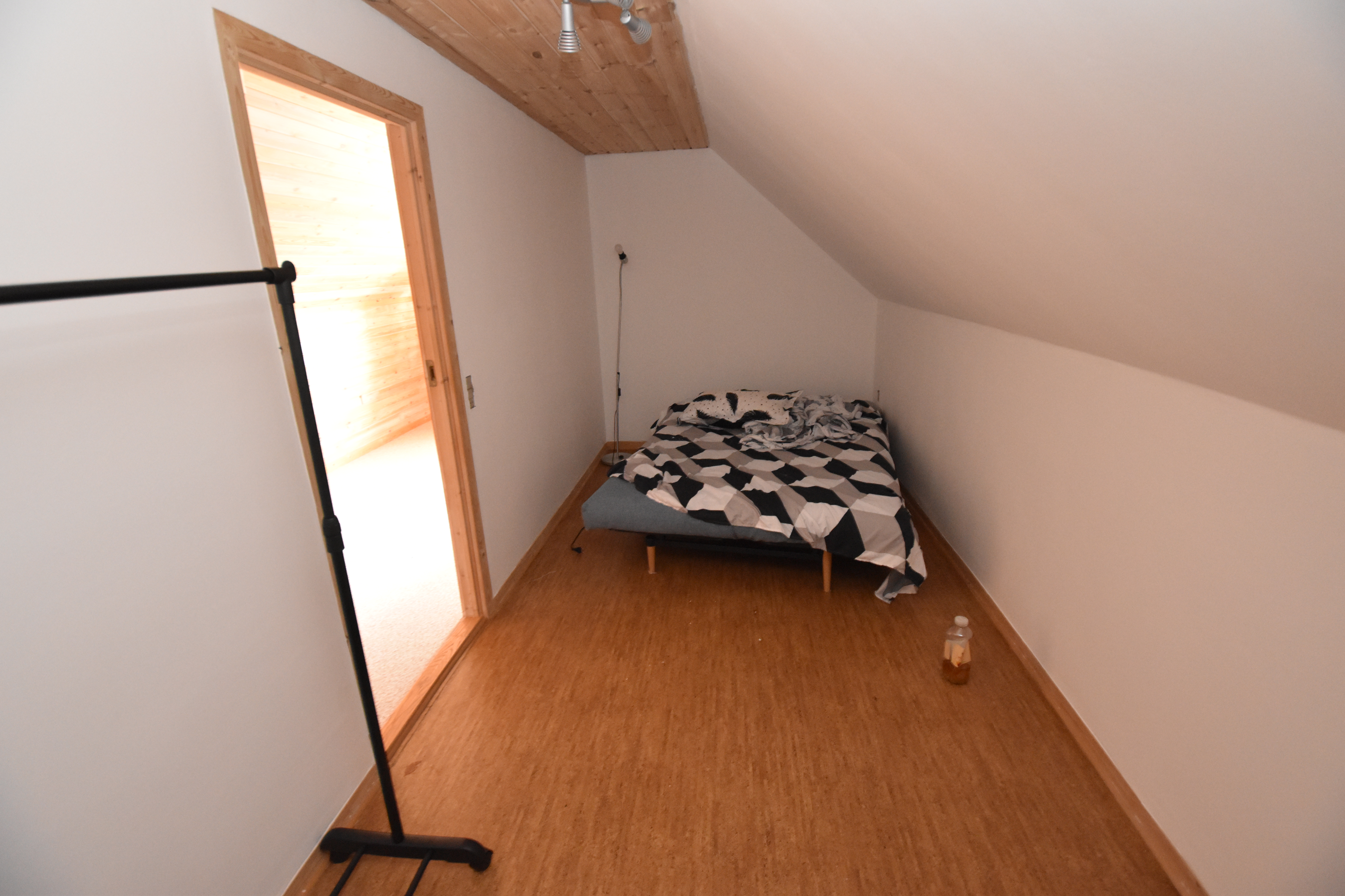 På husets første sal er der to rummelige værelser.Huset er incl. nye vinduer og der er opsat nyt pillefyr.